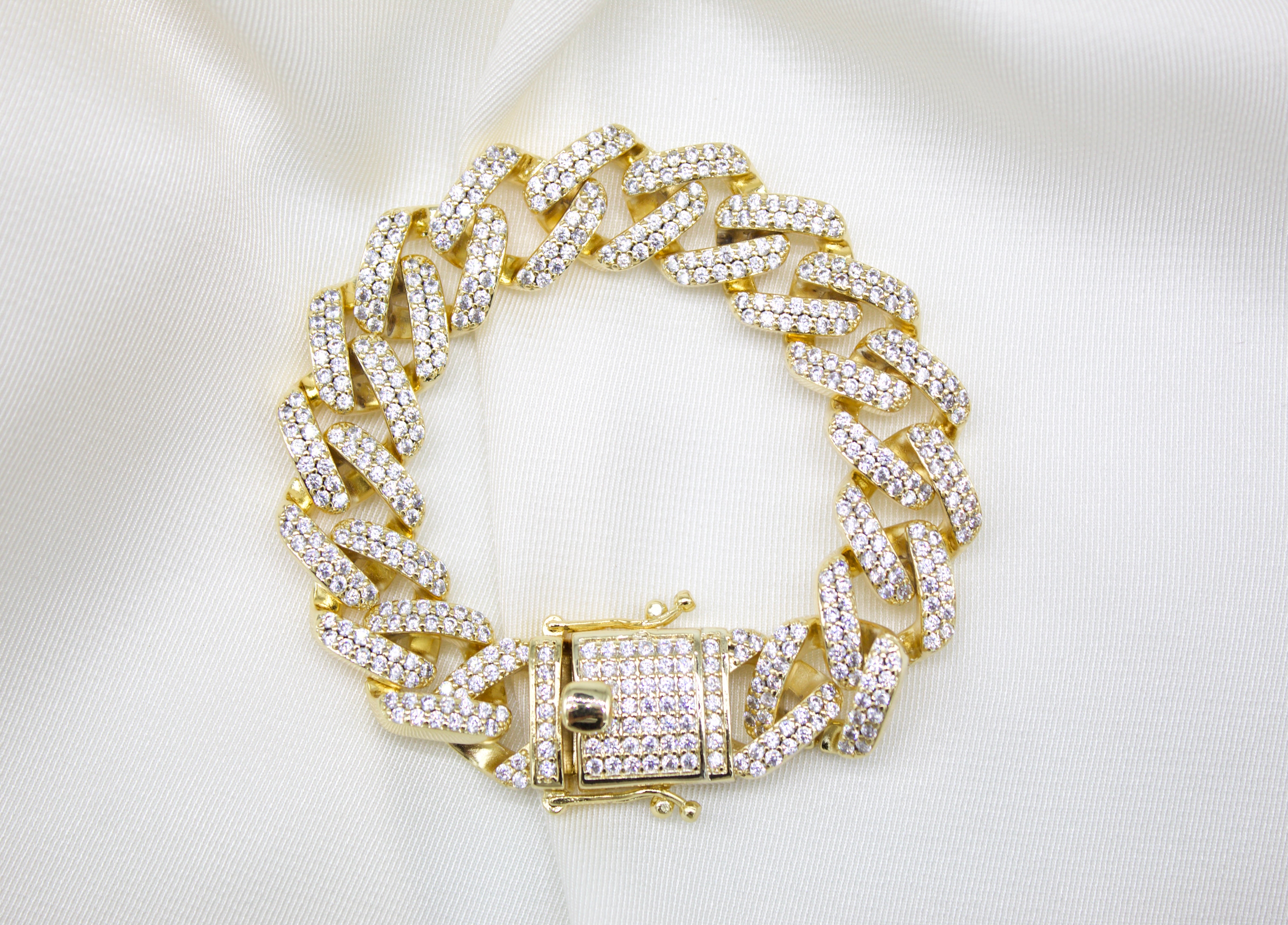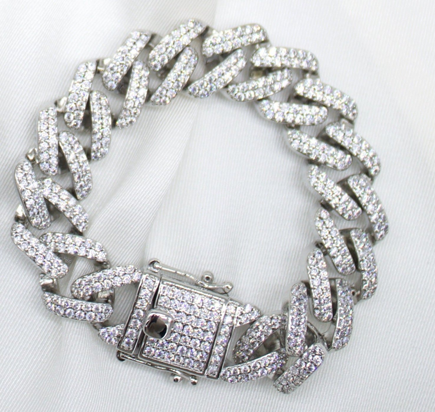 14mm Cuban Curb Chain Bracelet With Clear CZ Stones (I289)