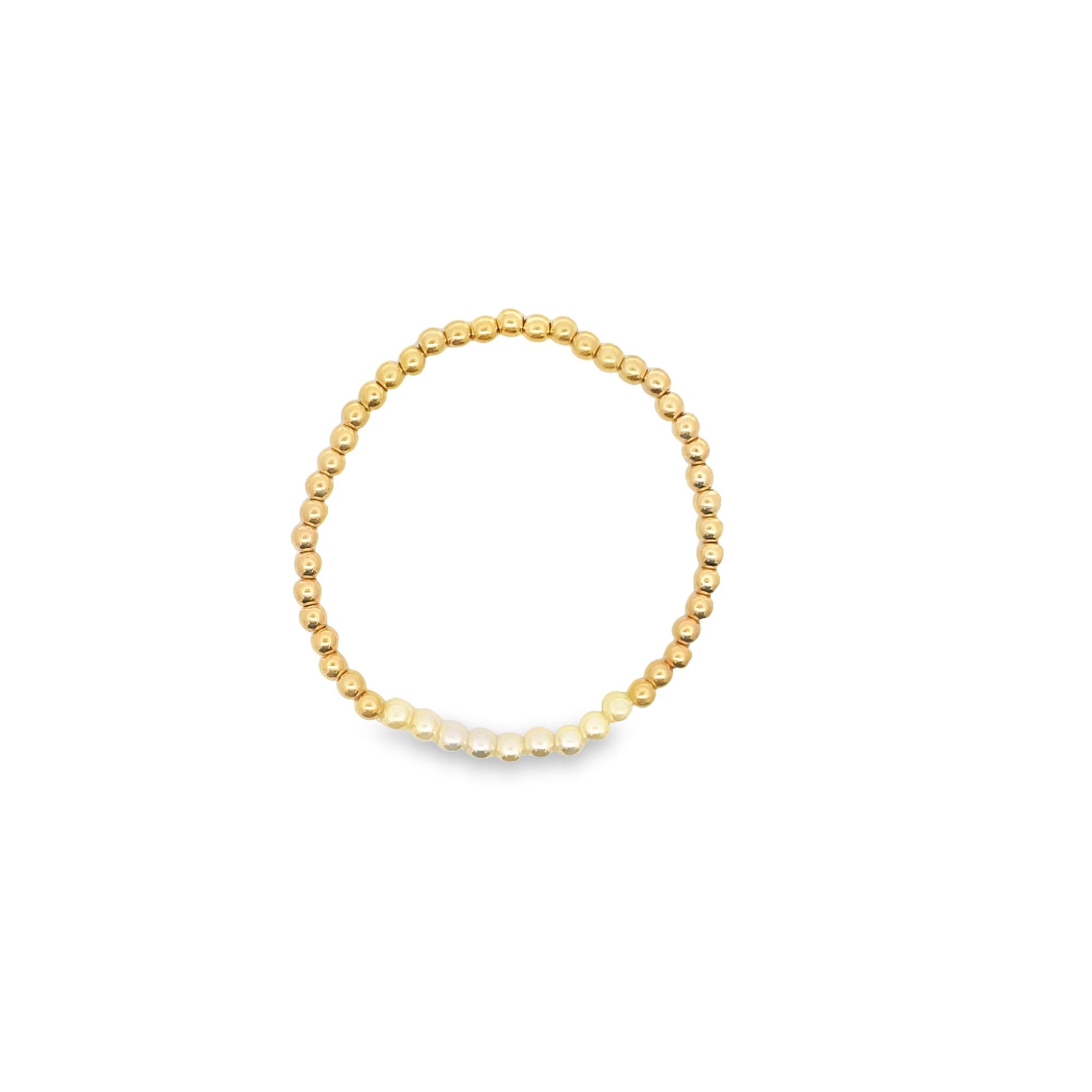 4mm Gold Elastic Bead Bracelet With Pearls (I47)