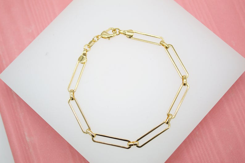 18K Gold Filled 4mm Slim Paper Clip Link Bracelet (I347)