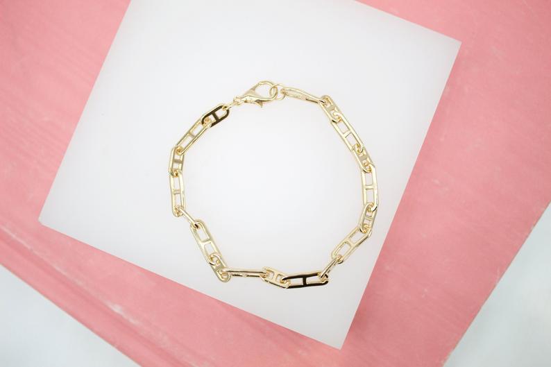 18K Gold Filled 5mm Designed Paper Clip Link Bracelet (I349)