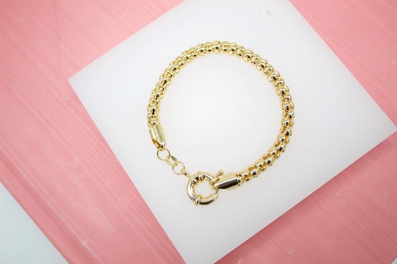 18K Gold Filled 5mm Popcorn Chain Bracelet (I33)