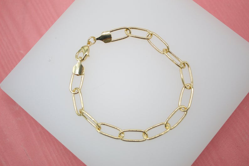 18K Gold Filled 6mm Paper Clip Link Bracelet (I388)