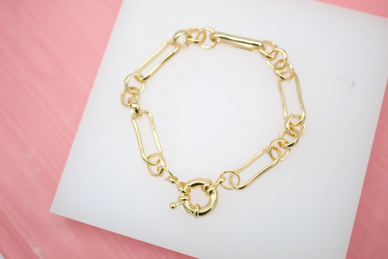18K Gold Filled 8mm Solid Rolo Round Link Bracelet (I69B)