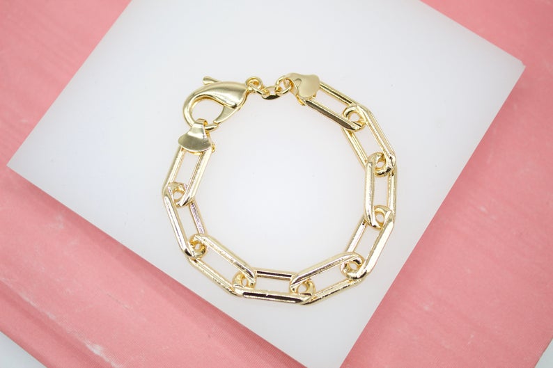 18K Gold Filled 9mm Paper Clip Bracelet (I356)