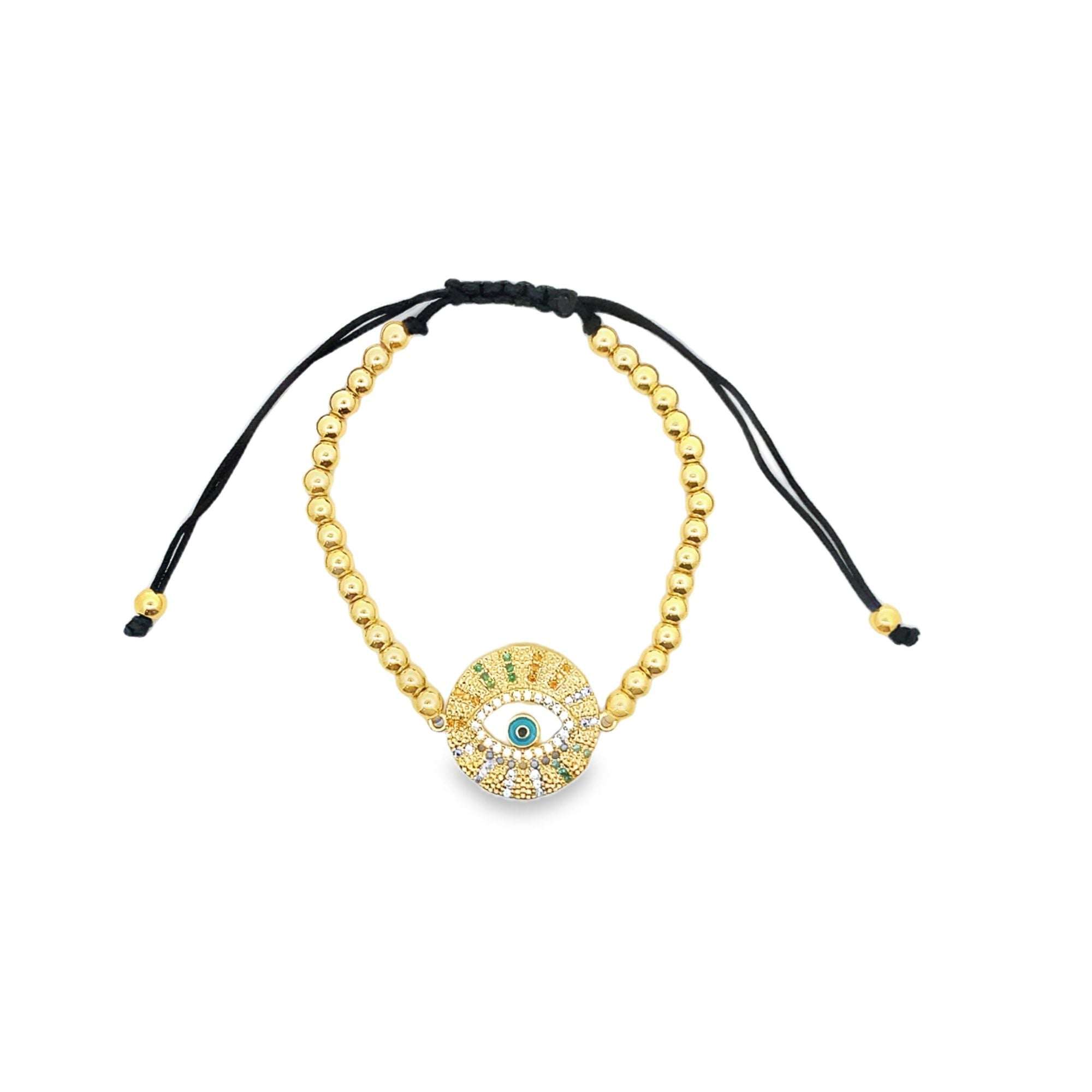 Adjustable Bead Bracelet With Egyptian Style Multicolor Oval Evil Eye CZ Stones Charm (I144-145)