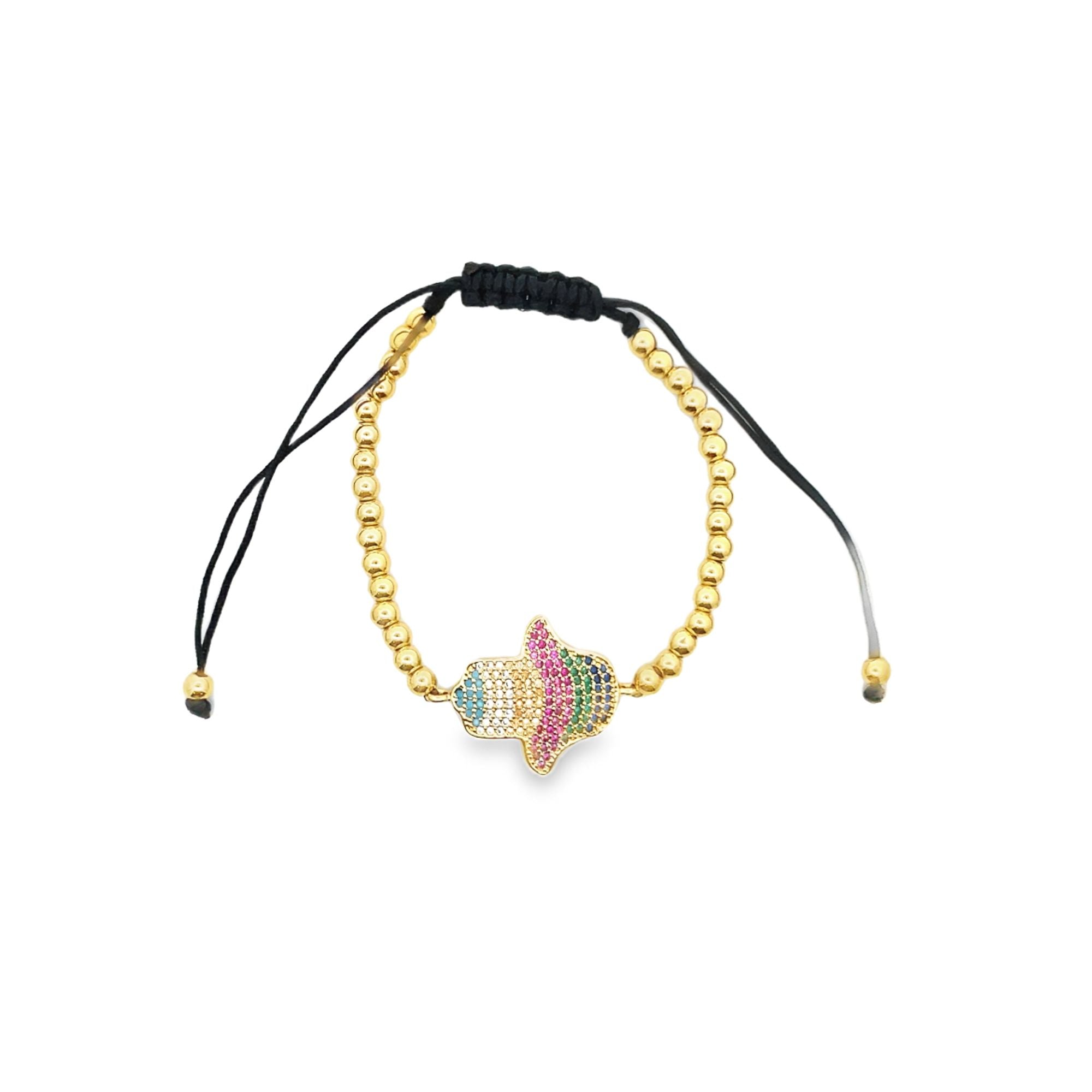 Adjustable Bead Bracelet With Multicolor Hamsa Hand CZ Stones Charm (I144-145)