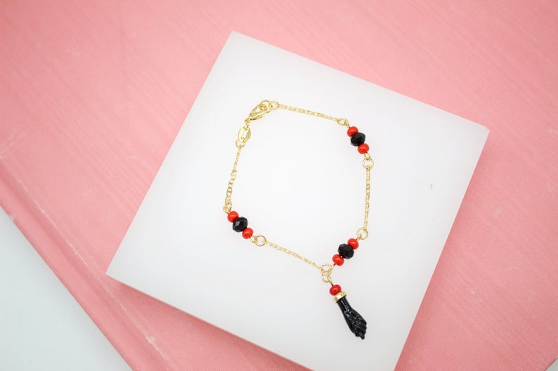18K Gold Filled Azabache 2mm Gucci Mariner Chain Bracelet With Protection Charm (I89)