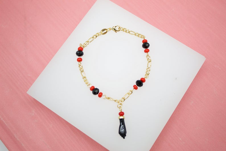 18K Gold Filled Azabache 3mm Figaro Chain Bracelet With Protection Charm (I404)
