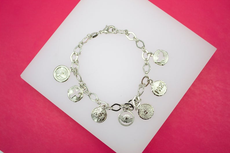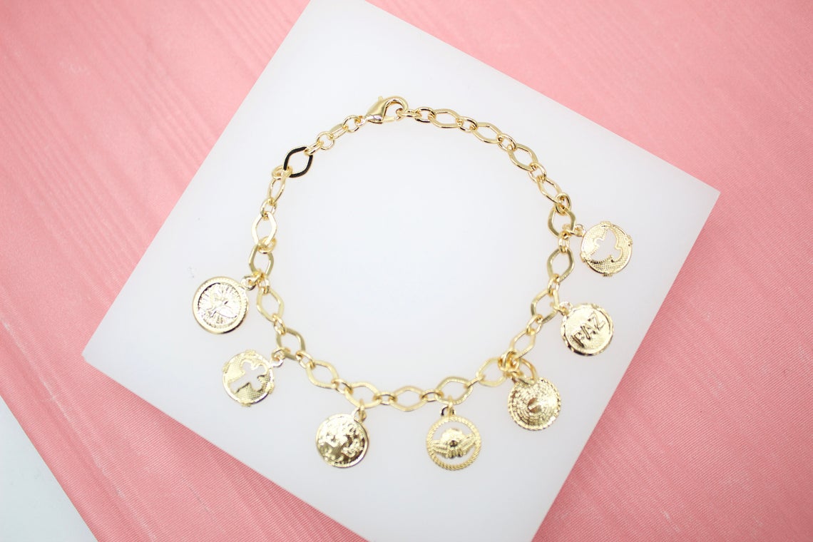 18K Gold Filled Christian Coin Religious Charm Bracelet (I57B)