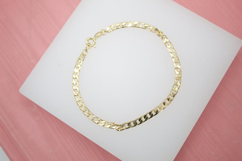 18K Gold Filled Cuban Link 3mm Chain Bracelet (I273)