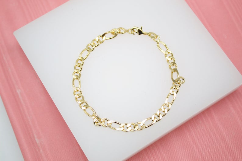 18K Gold Filled Figaro 5mm Link Chain Bracelet (I259)
