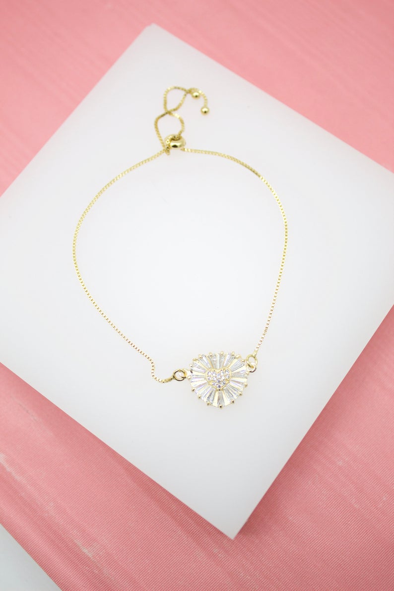 18K Gold Filled Heart Adjustable Box Chain Bracelet With Micro CZ Stones