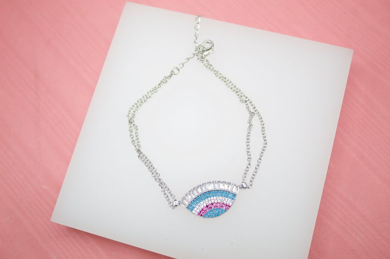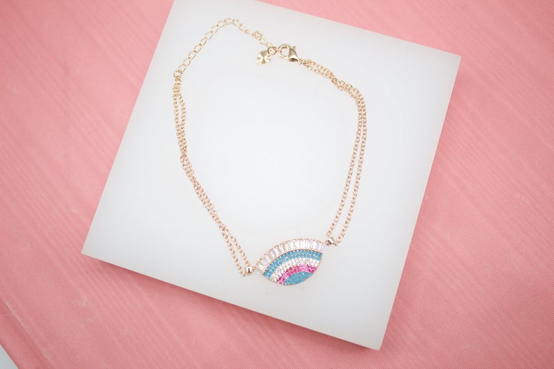18K Gold Filled Lucky Protection Bracelet With Clear CZ Stones (I114)