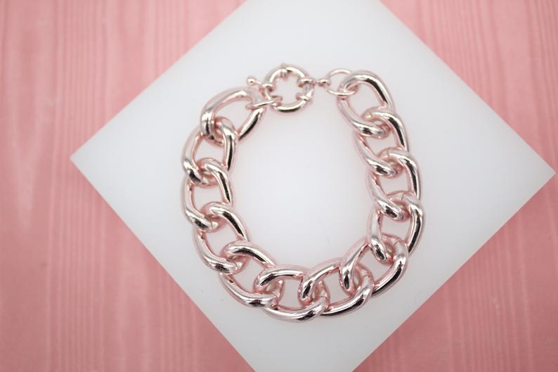 18K Gold Filled Pink Chunky Thick Curb Cuban Link Chain Bracelet