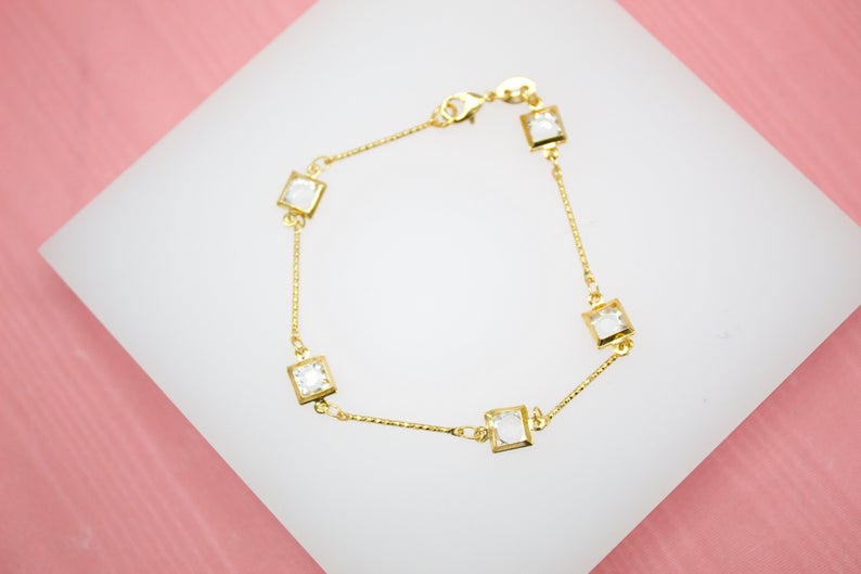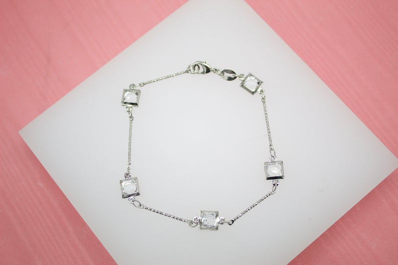 Square CZ Cubic Zirconia Stone Bracelet (I166)