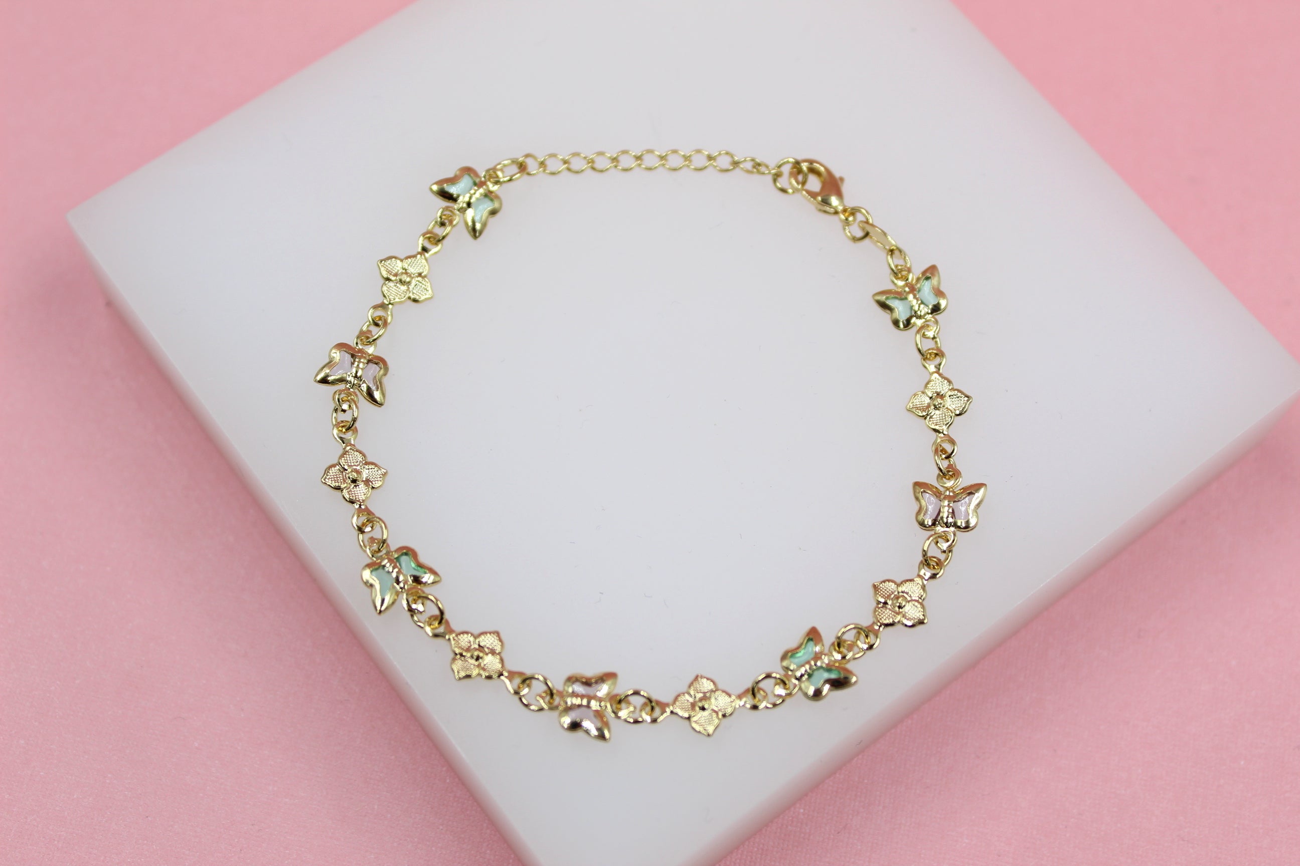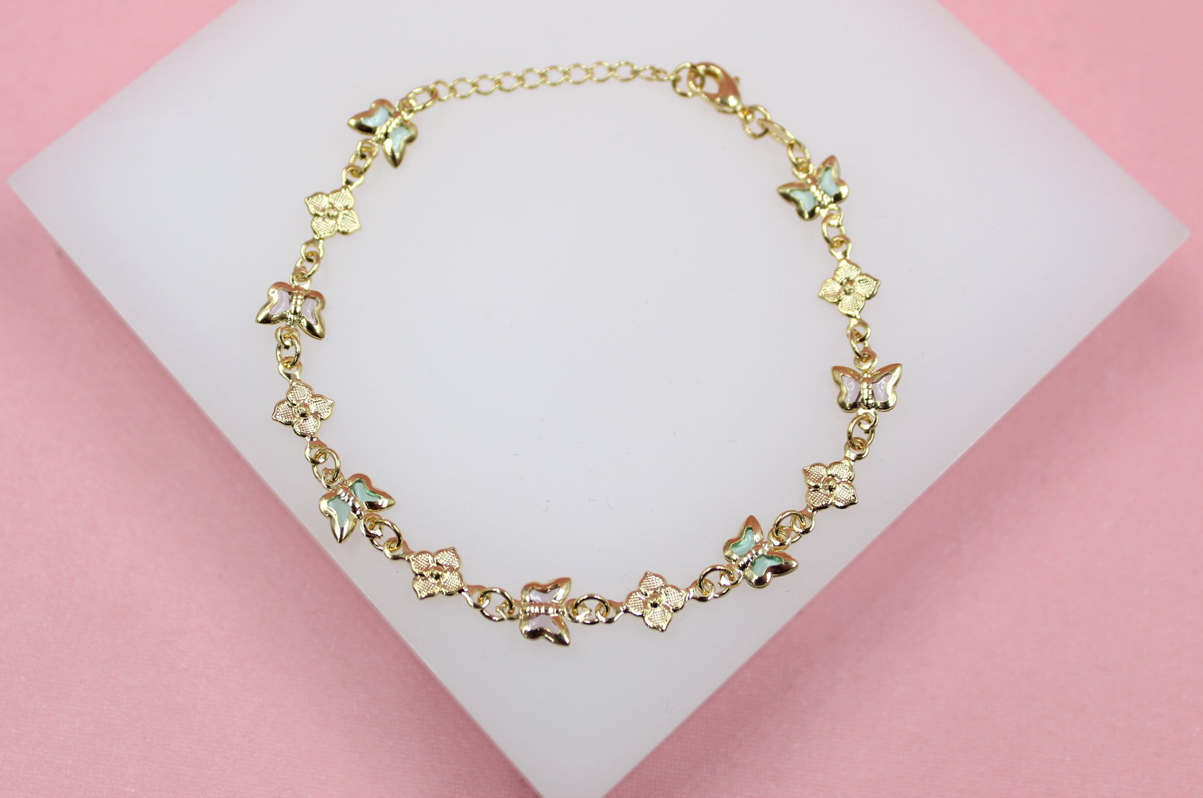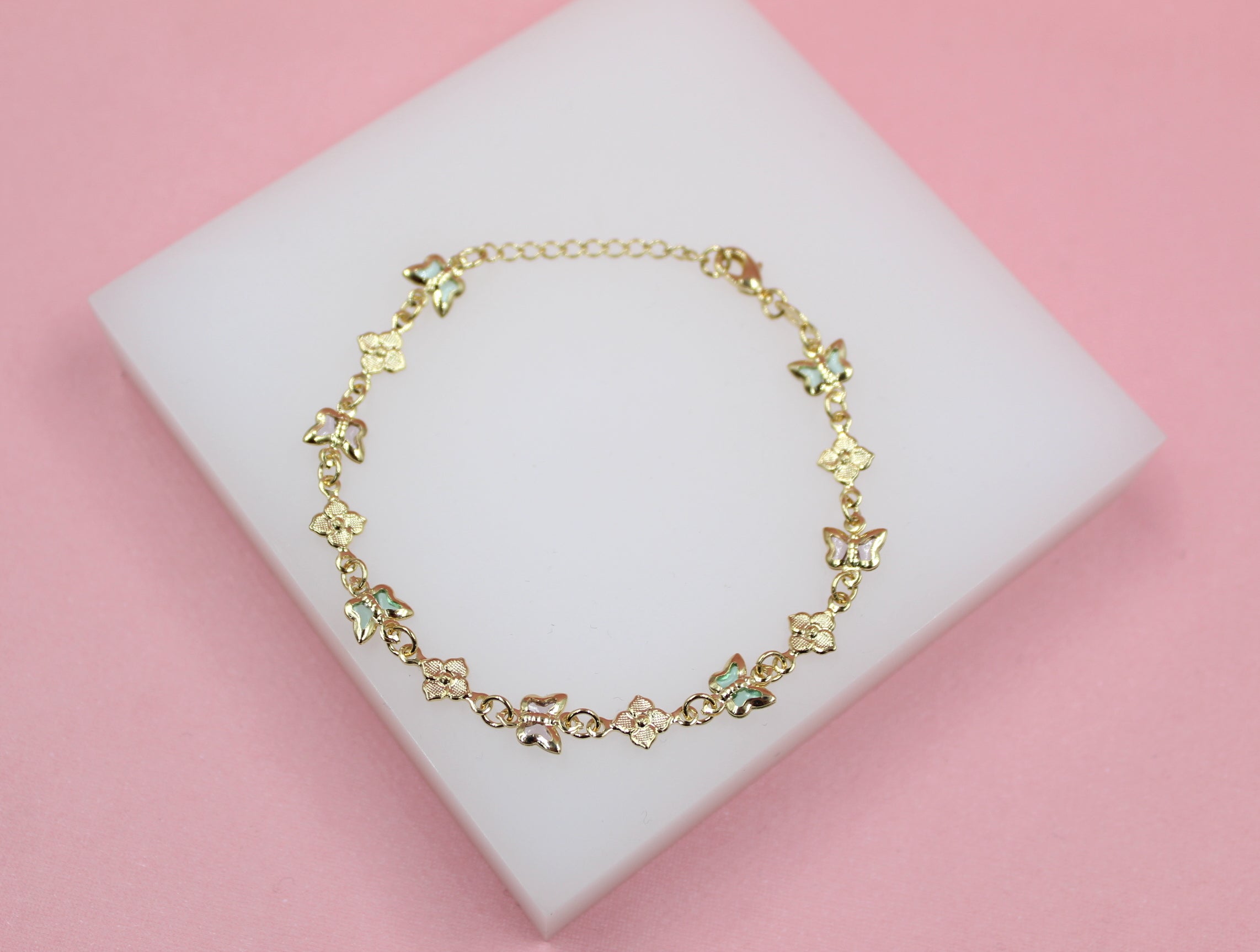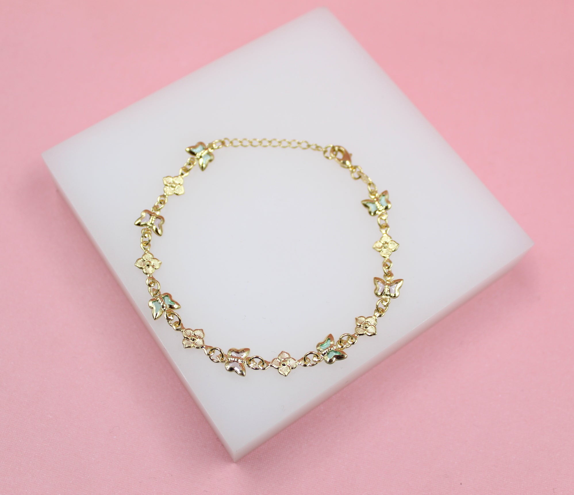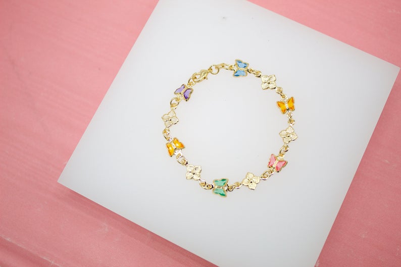 Multi-Color Butterfly Dainty Charm Bracelet With Flower Charms (I211)