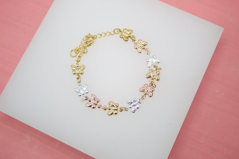 Multi-Toned Butterfly Dainty Charm Bracelet (I159)