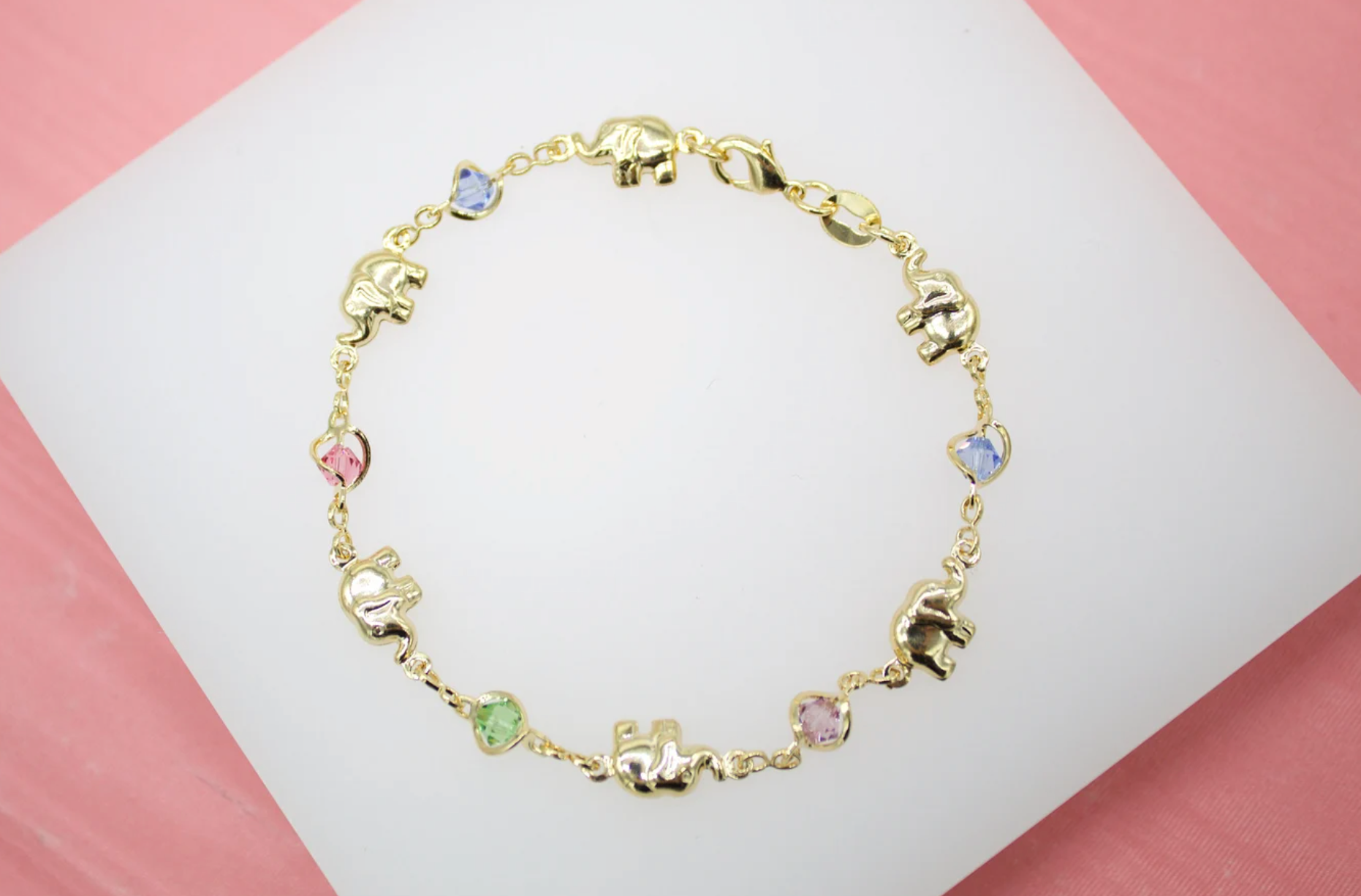 Multi Color CZ Elephant Charm Bracelet (I152)
