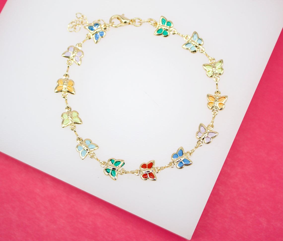 MultiColor CZ Stones Butterfly Charm Bracelet (I161)