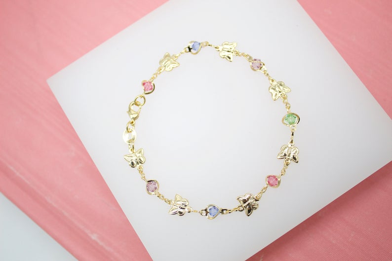 MultiColor CZ Stones With Butterfly Charms Bracelet (I153)