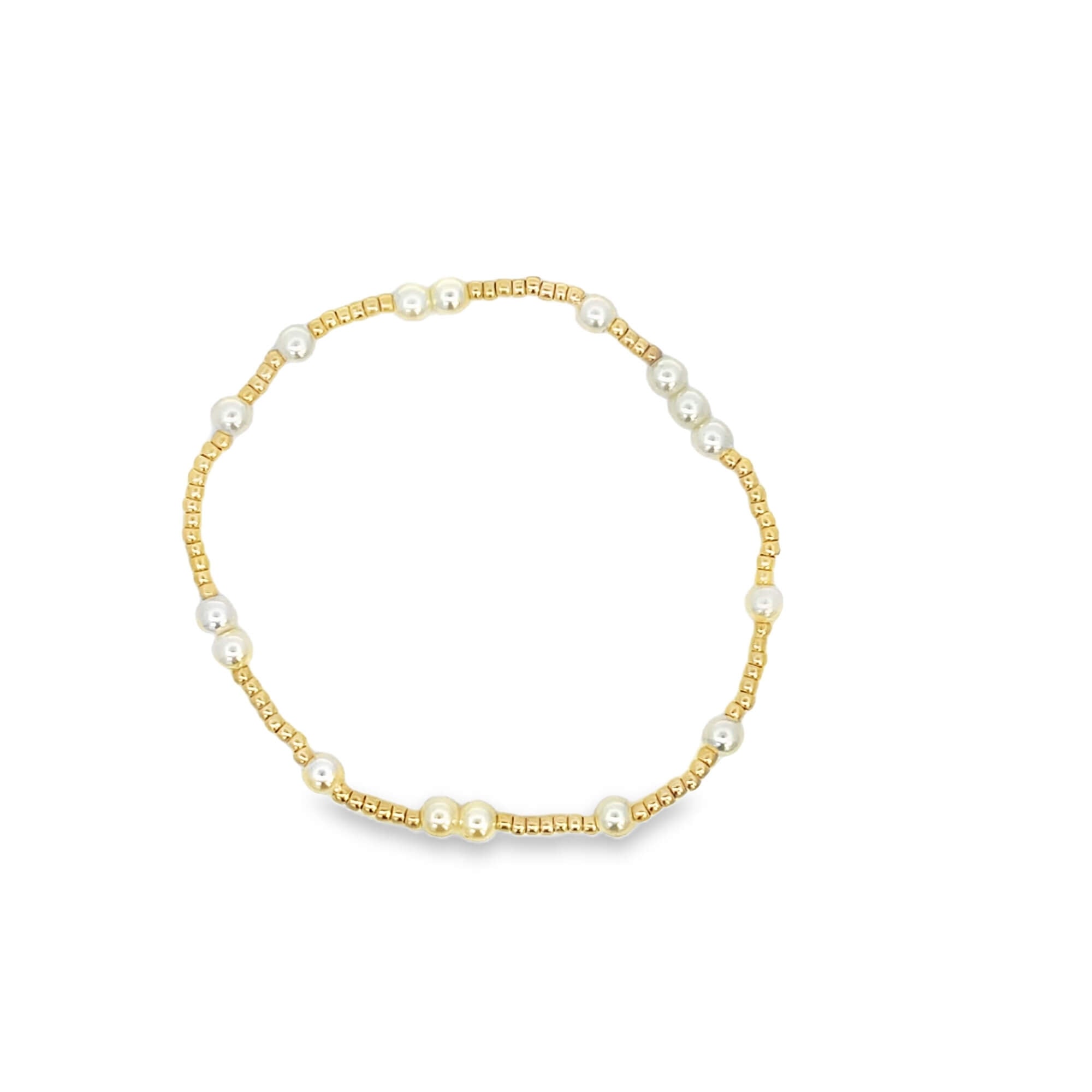 Thin Designed Elastic Gold and Pearl Beaded Bracelet (I243A)