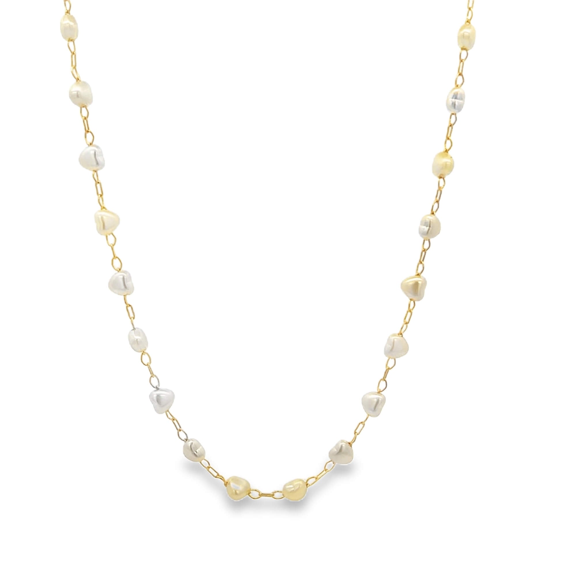 Elevate your elegance with this Tiny Heart Shaped Pearl Charm Link Necklace. Featuring a delicate heart-shaped pearl charm suspended on a refined link chain, it offers a subtle yet timeless statement. Perfect for layering or wearing alone, this necklace adds a touch of sophistication to any ensemble.