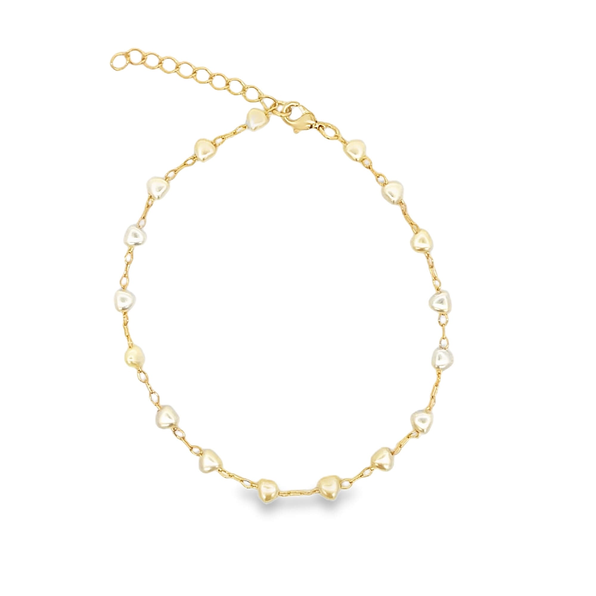 Tiny Heart Shaped Pearl Charm Link Bracelet (H156/I516/E261)