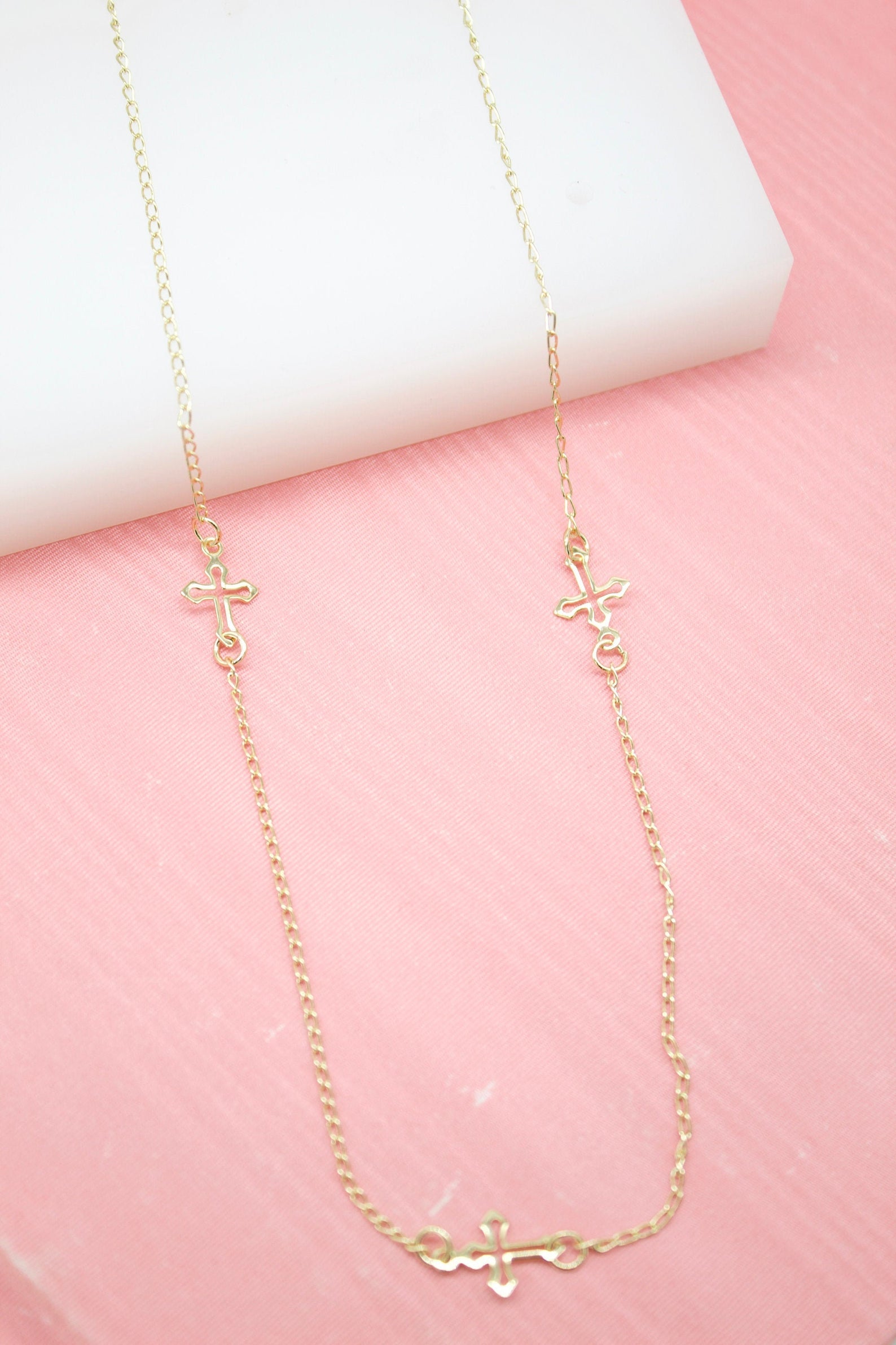 Gold Filled Dainty Cross Necklace with Closed Chain (G61)