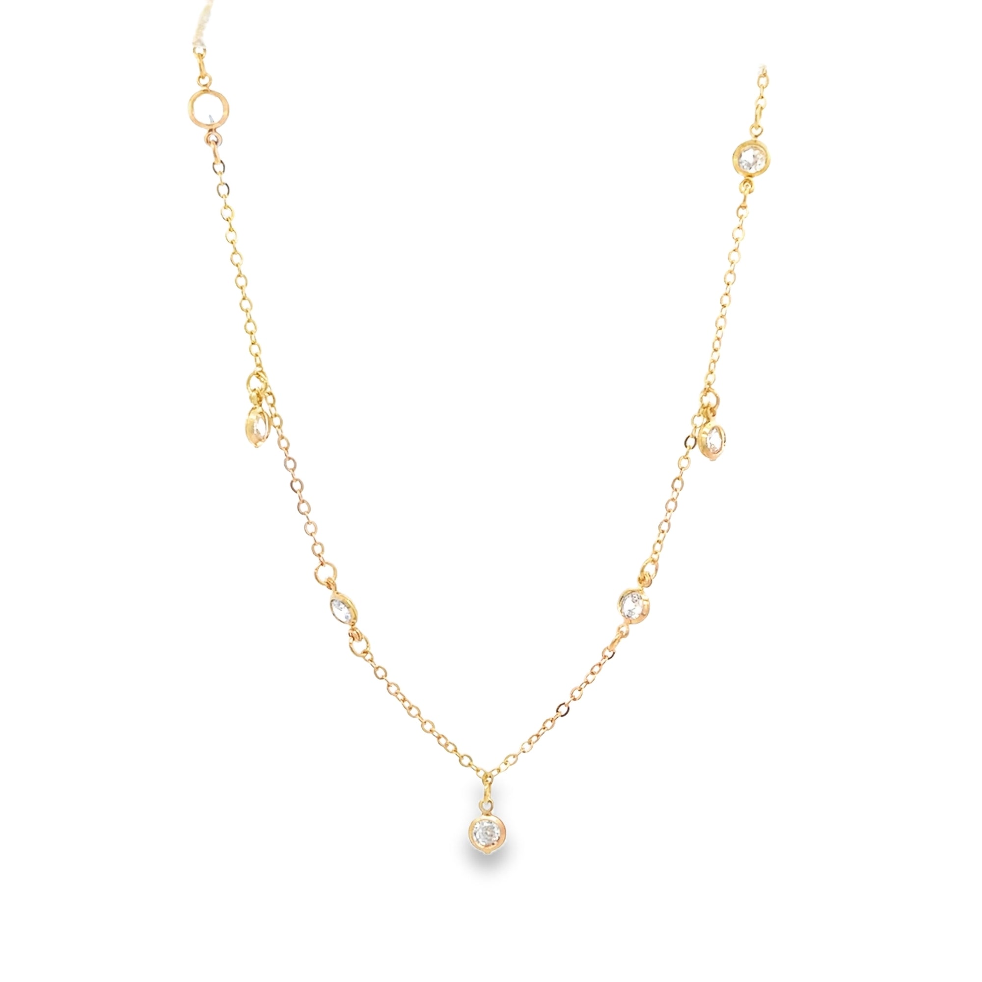 Dangle Round Cubic Zirconia Rolo Chain Necklace (H86)