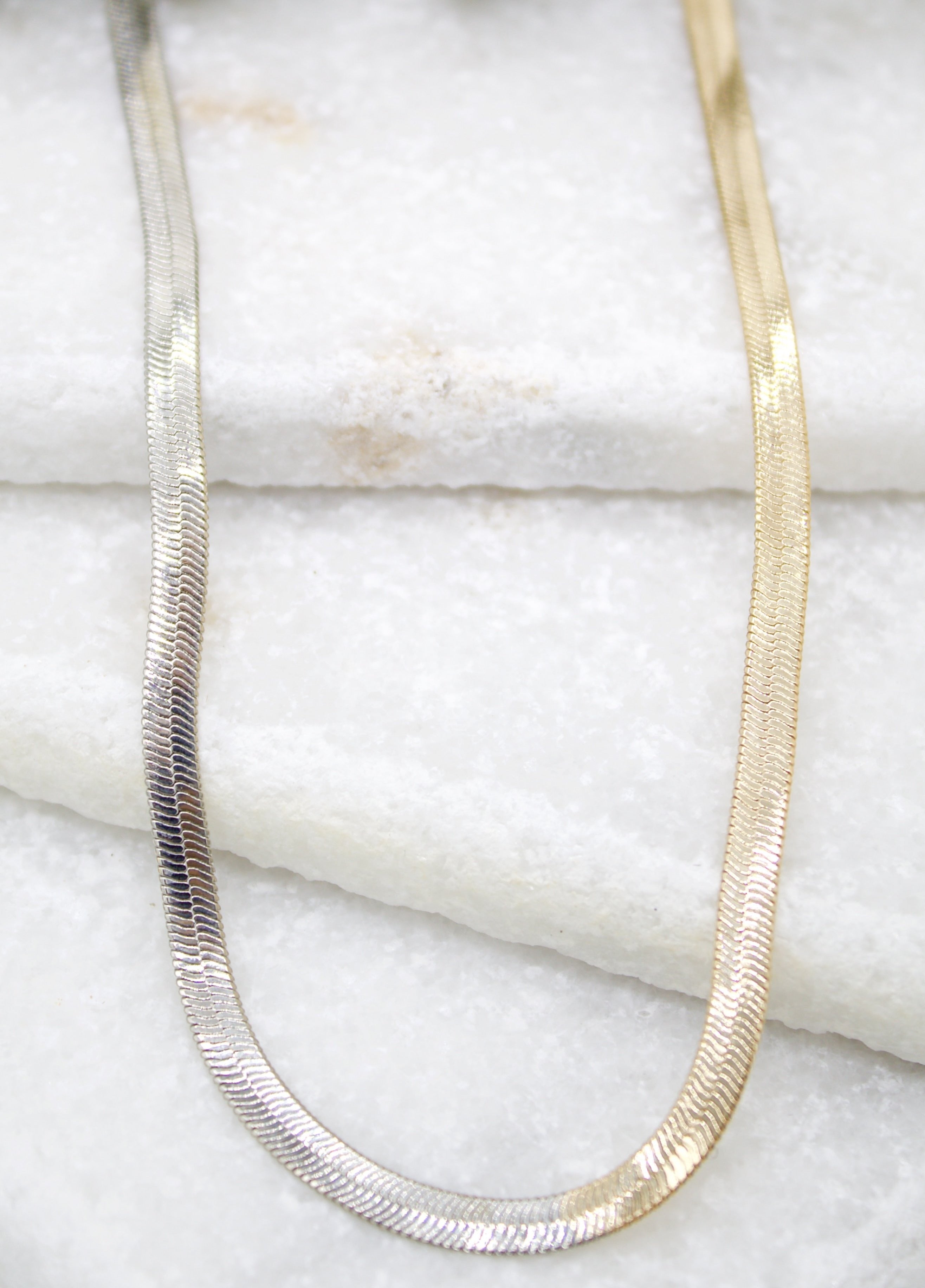 Two Toned 4mm Herringbone Snake Chain (H10)