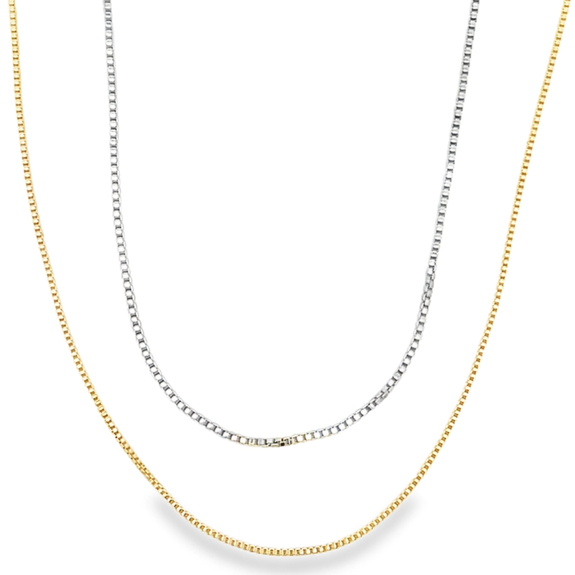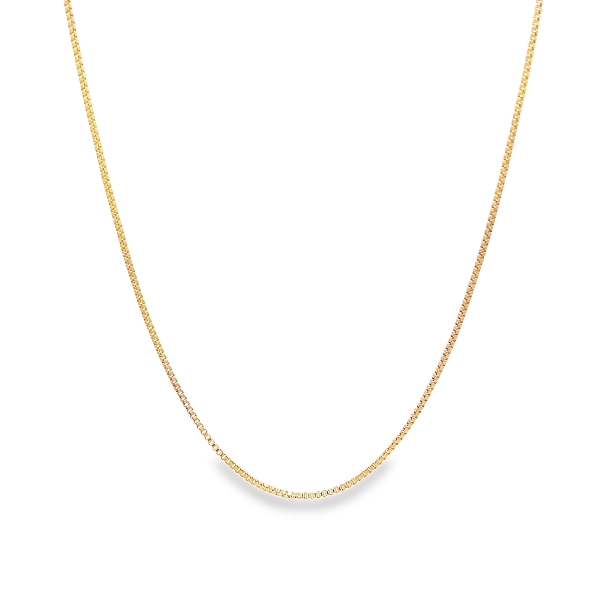 Indulge in the delicate beauty of our 1mm Box Chain. Crafted with precision and style, this chain exudes elegance and luxury. Perfect for layering with other pieces or wearing alone for a simple and sophisticated look. Elevate your style with this timeless and versatile piece.
