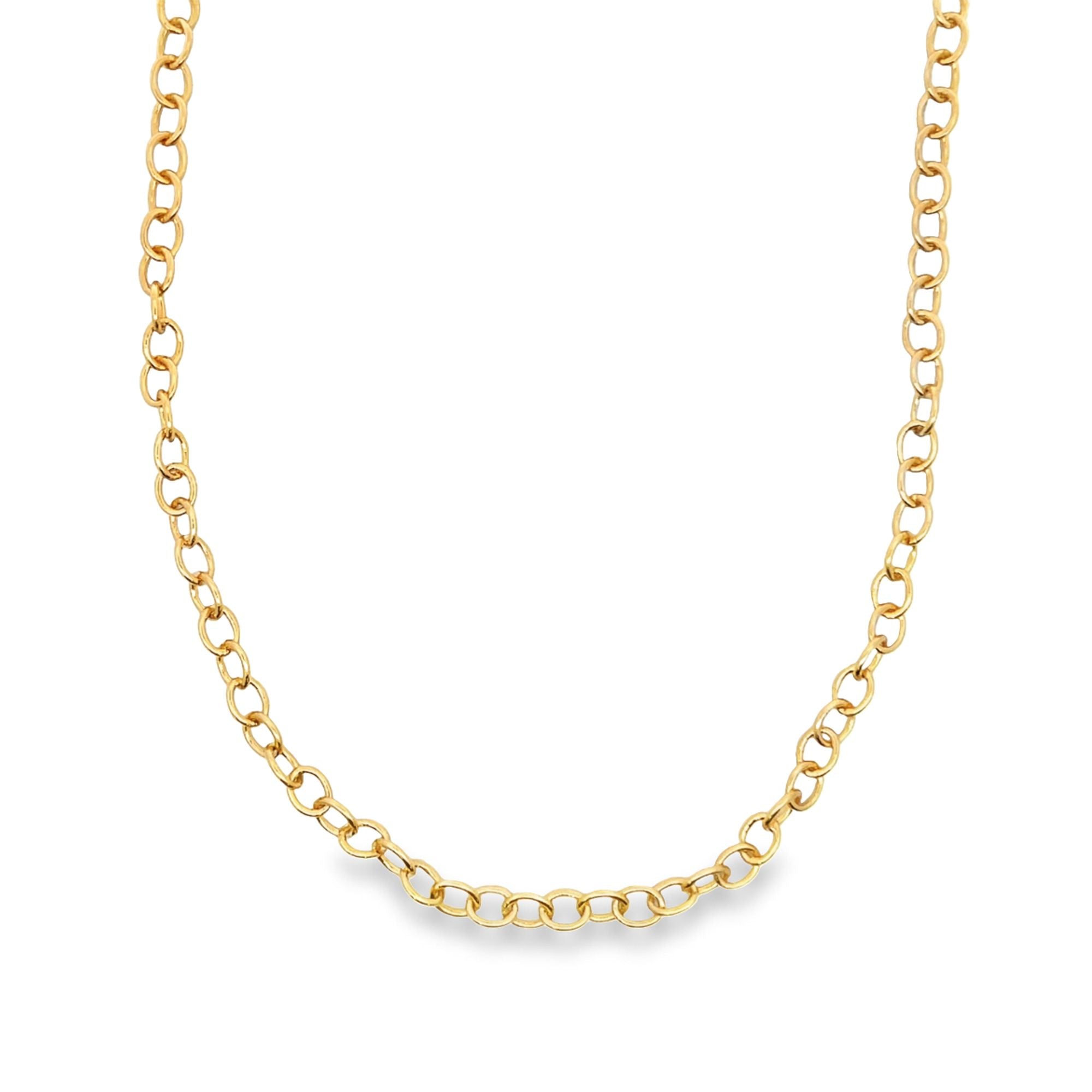 Indulge in timeless elegance with our 5mm Rolo Round Oval Circle Dainty Link Chain. Crafted with precision and sophistication, this chain adds a touch of luxury to any outfit. Its delicate yet sturdy design offers endless styling options and ensures lasting beauty. Elevate your accessories collection with this premium chain.