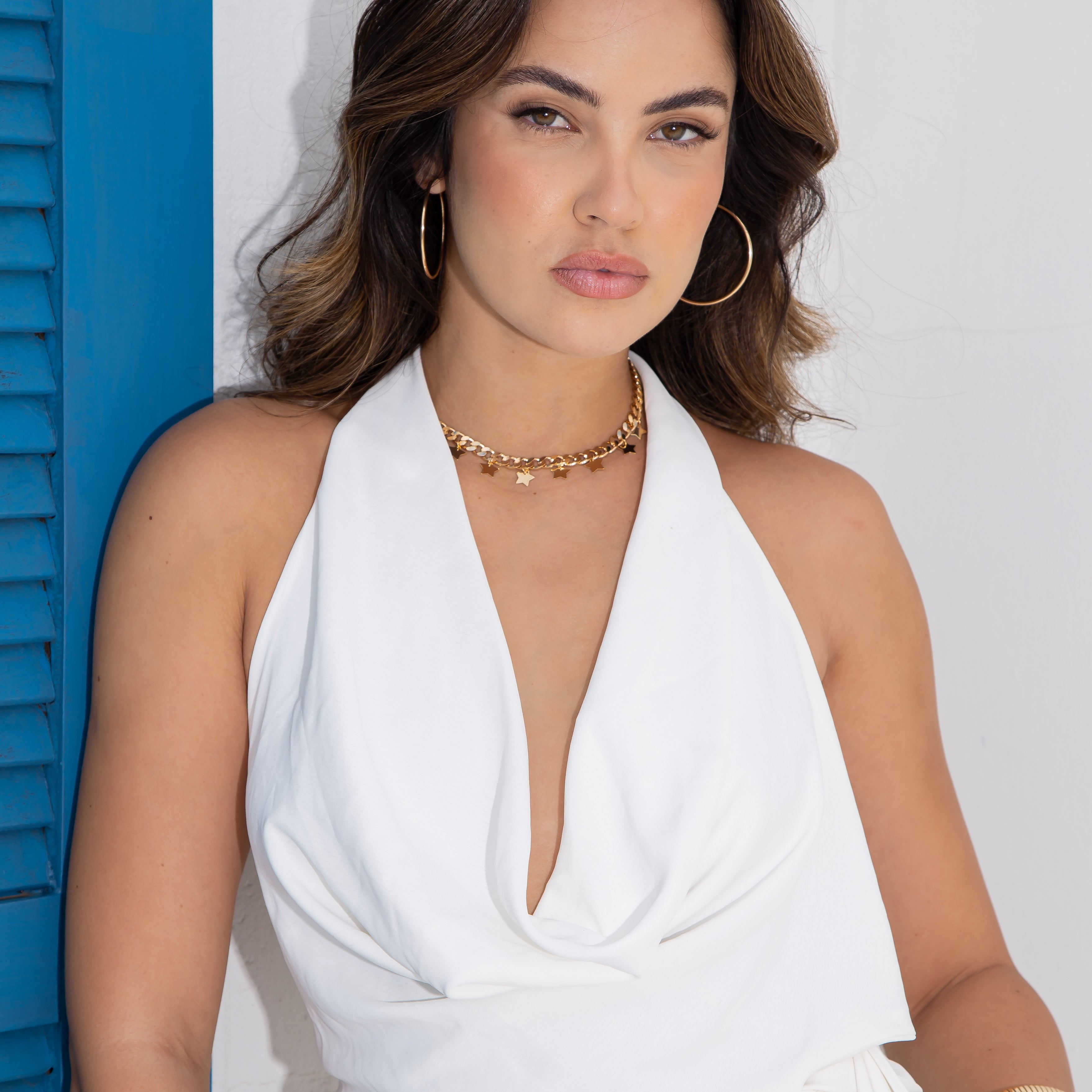 3mm Herringbone CZ Star Charm Necklace (H15)