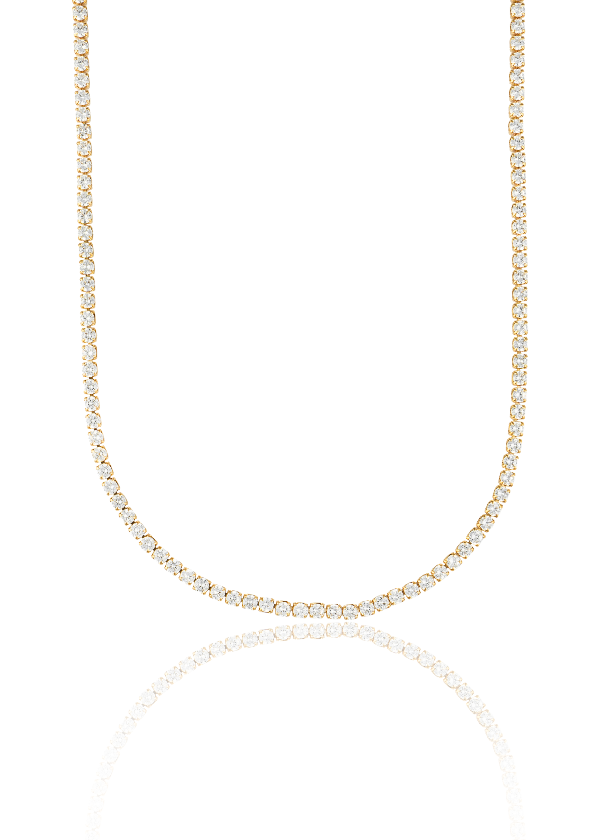 Indulge in timeless elegance with our 3mm CZ Tennis Choker. Embellished with sparkling cubic zirconia stones, this luxurious piece adds a touch of sophistication to any outfit. Its delicate design and premium materials make it the perfect accessory for any occasion. Elevate your style and feel like royalty with this exclusive choker.