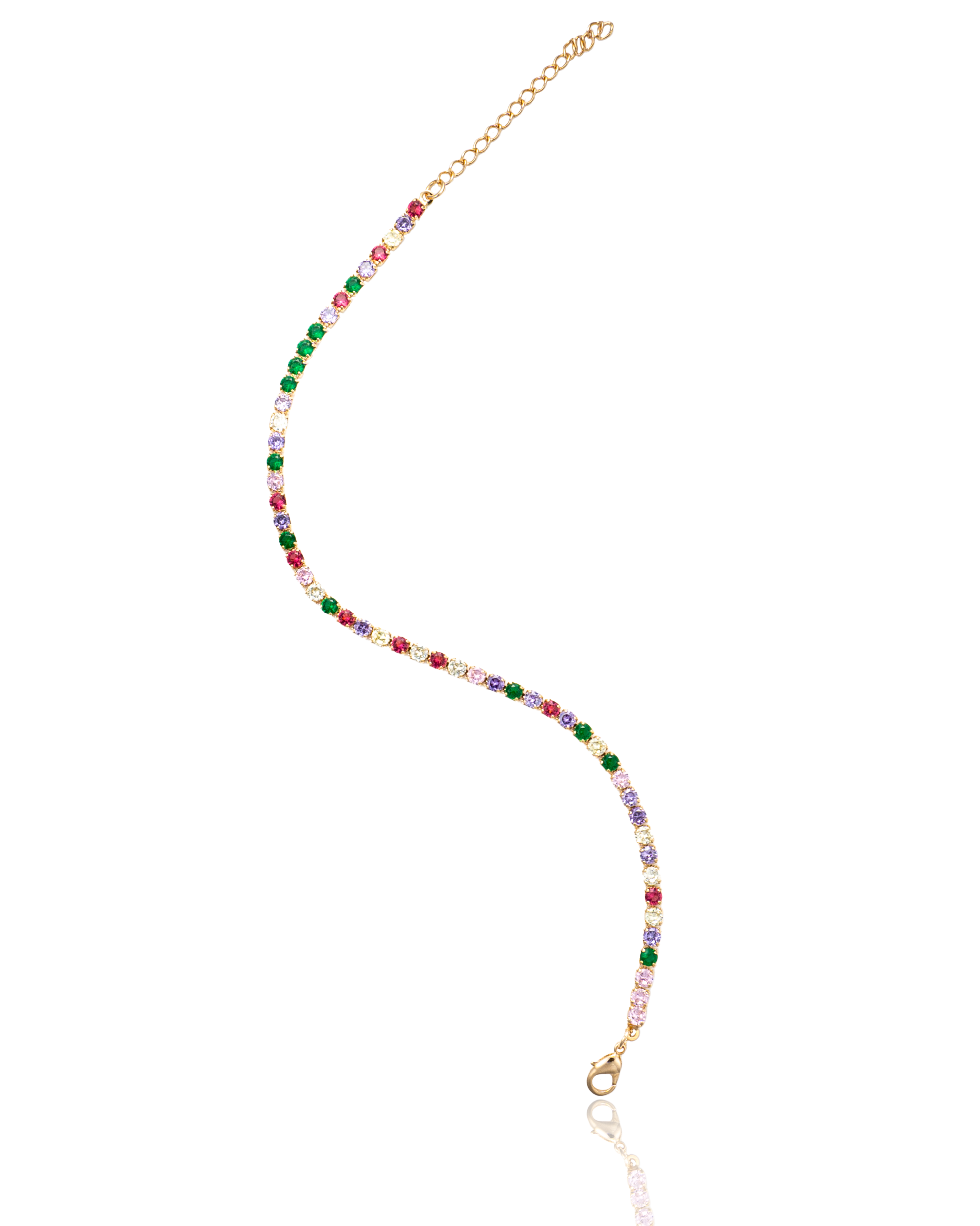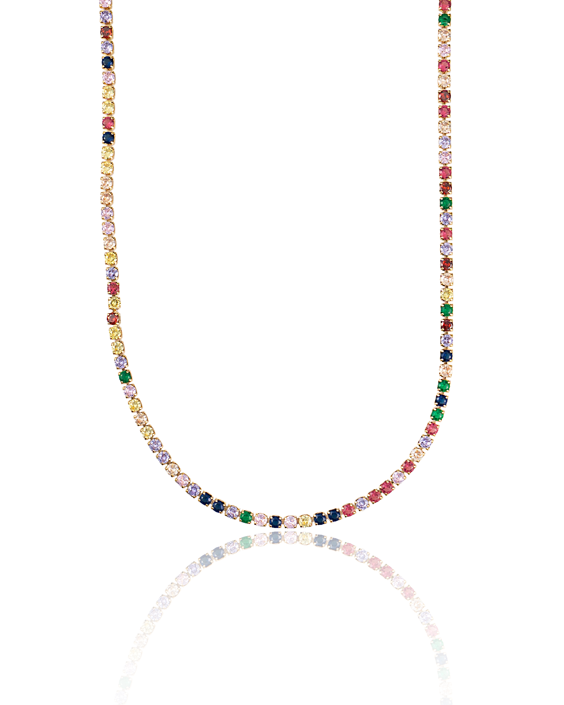 Add a touch of elegance to your wardrobe with our 3mm Round Multicolor CZ Tennis Necklace. Featuring a variety of stunning, colorful CZ stones set in a classic, tennis-style design, this necklace is perfect for any occasion. Exude sophistication and luxury with this timeless piece.