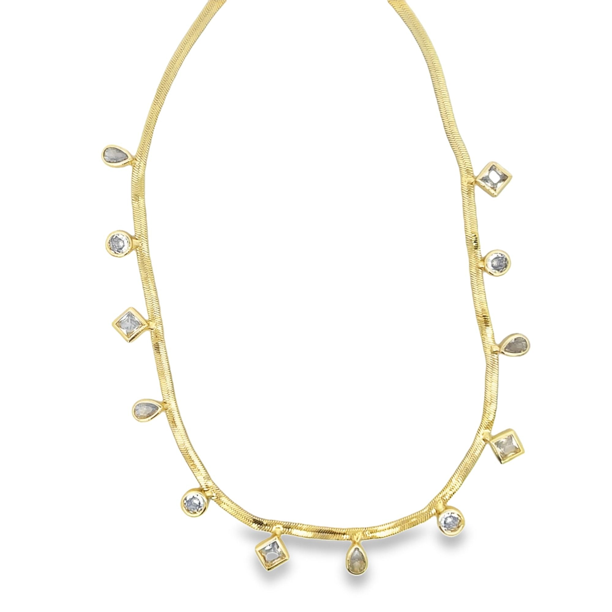 Clear CZ Shape Charms Herringbone Necklace (H244)