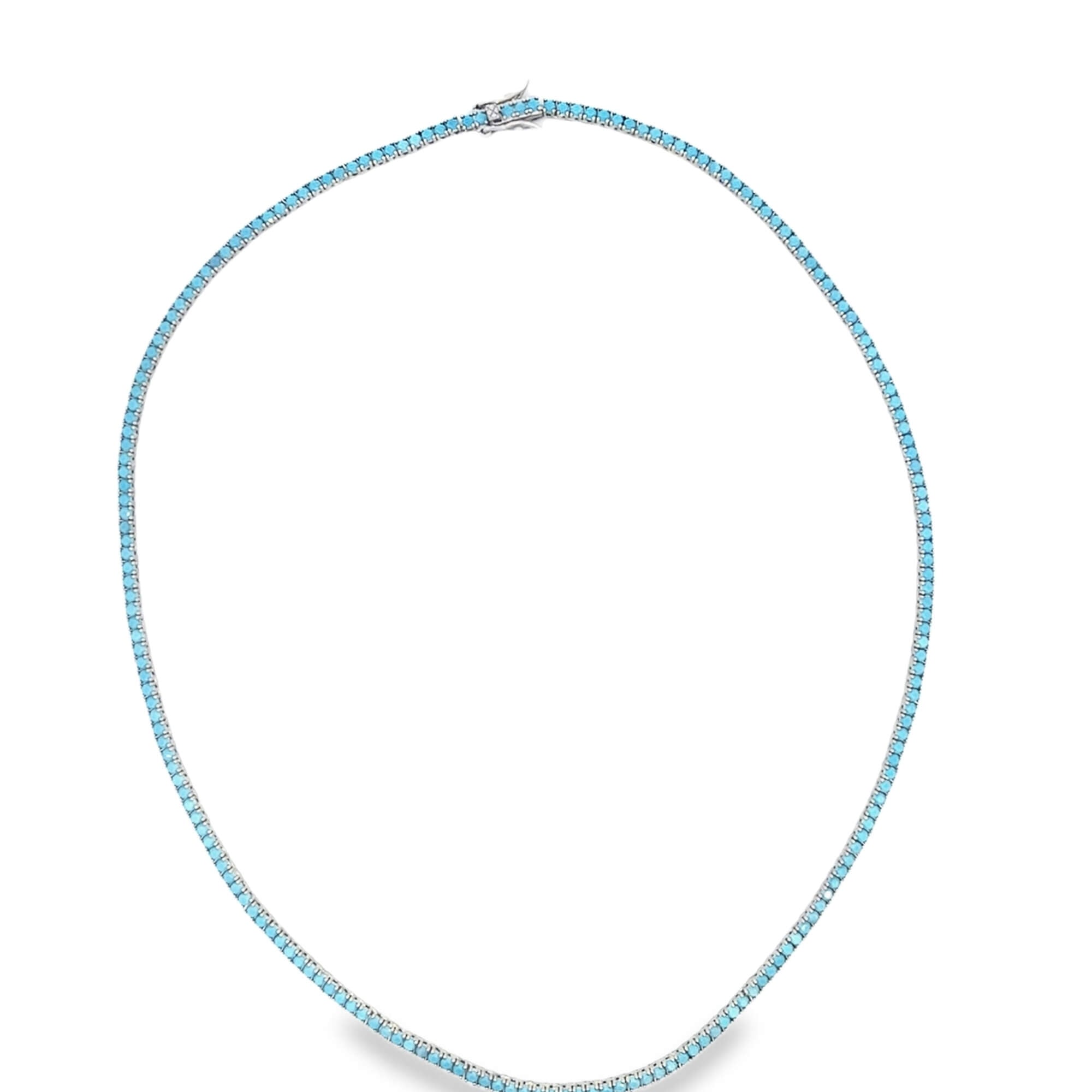 Elevate your jewelry game with our Dark Colored Tennis Necklace. Its deep, rich hue adds a touch of drama to any outfit, while the classic tennis style exudes sophistication. Perfect for both casual and formal occasions, this necklace is a statement piece that exudes luxury and exclusivity.