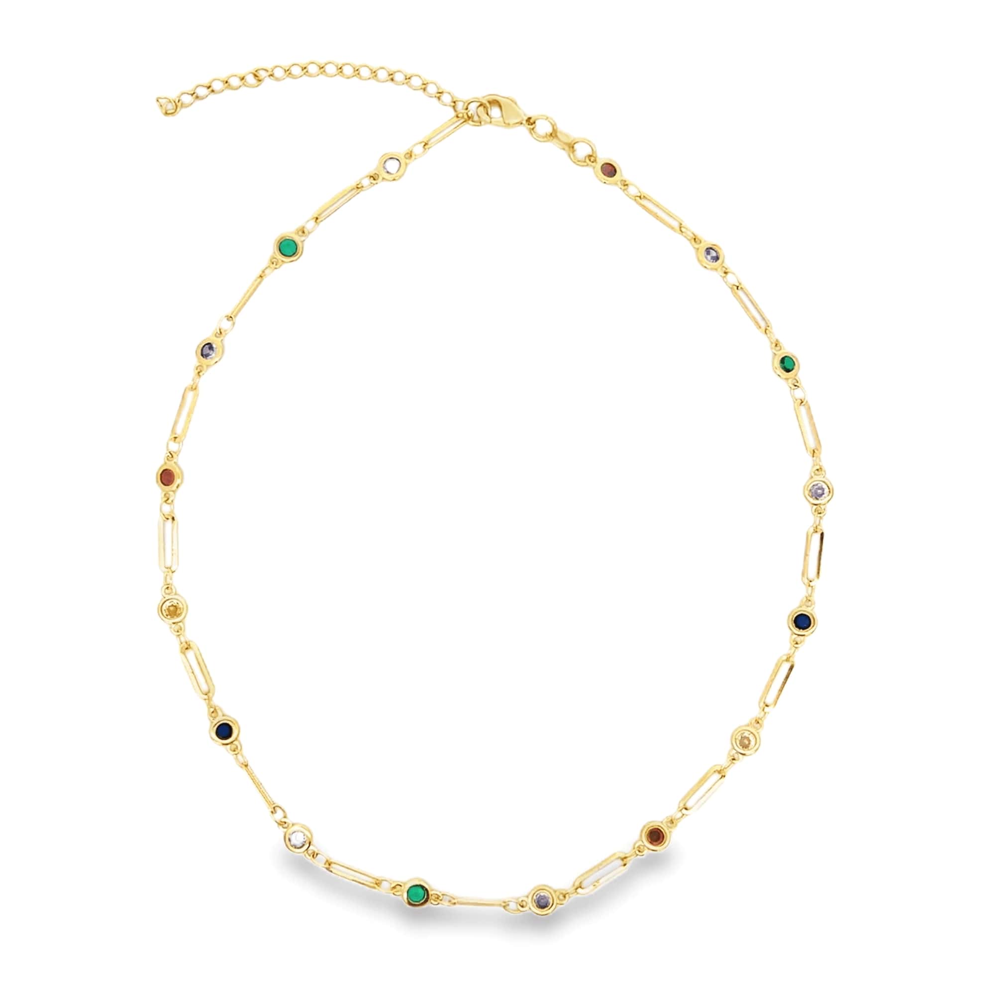 Multicolor CZ Round Charm Clip Link Choker (H288/I132B)