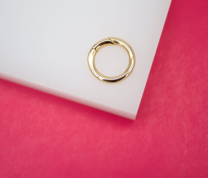 Enhance your jewelry designs with our Gold Filled Small Self-Closing Hook Clasp, featuring a diameter of 18.3mm and a thickness of 3.4mm.