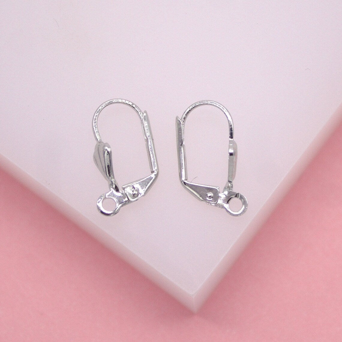 Secure your earrings with our Rhodium Filled French Lever Back Clasps, measuring 16mm x 11mm.