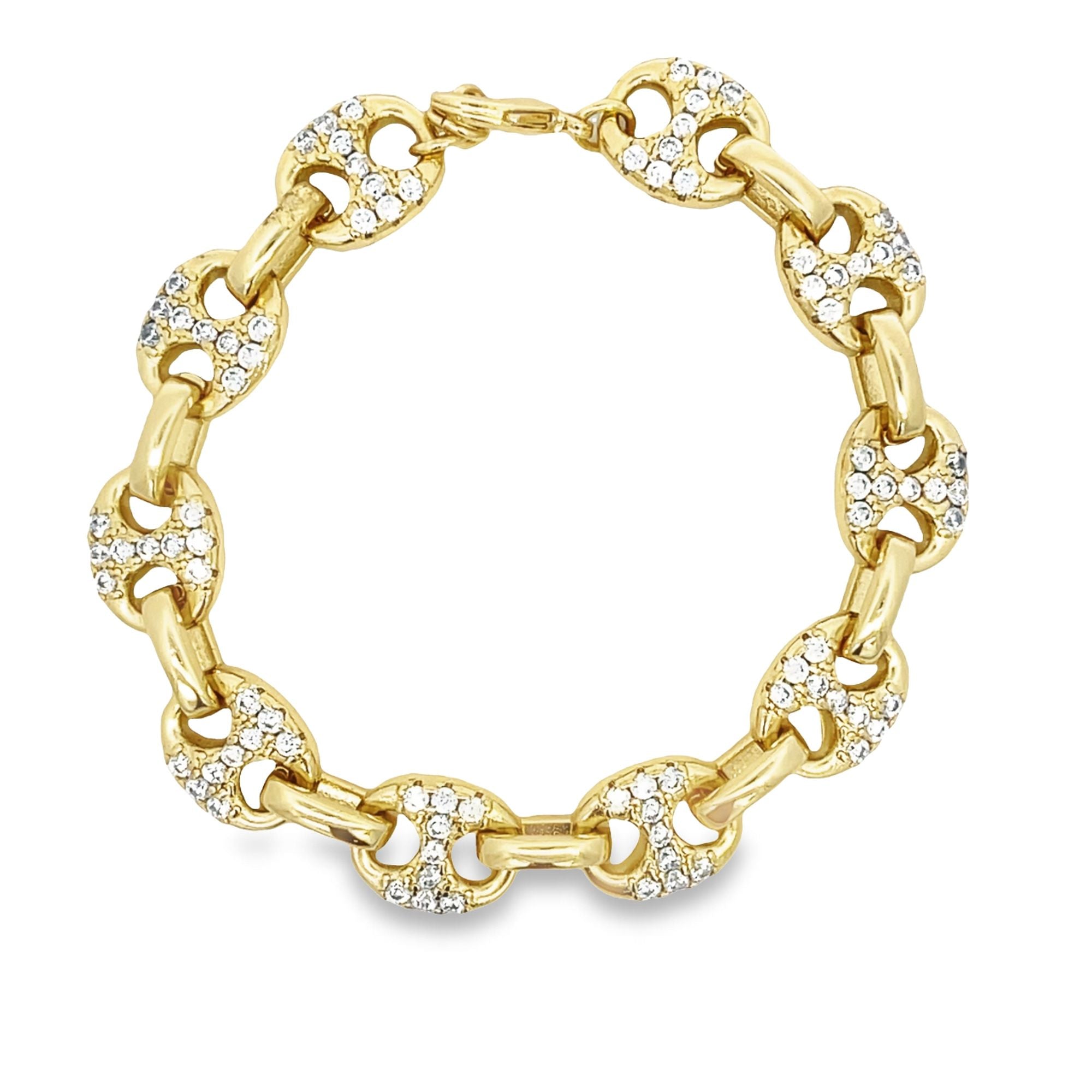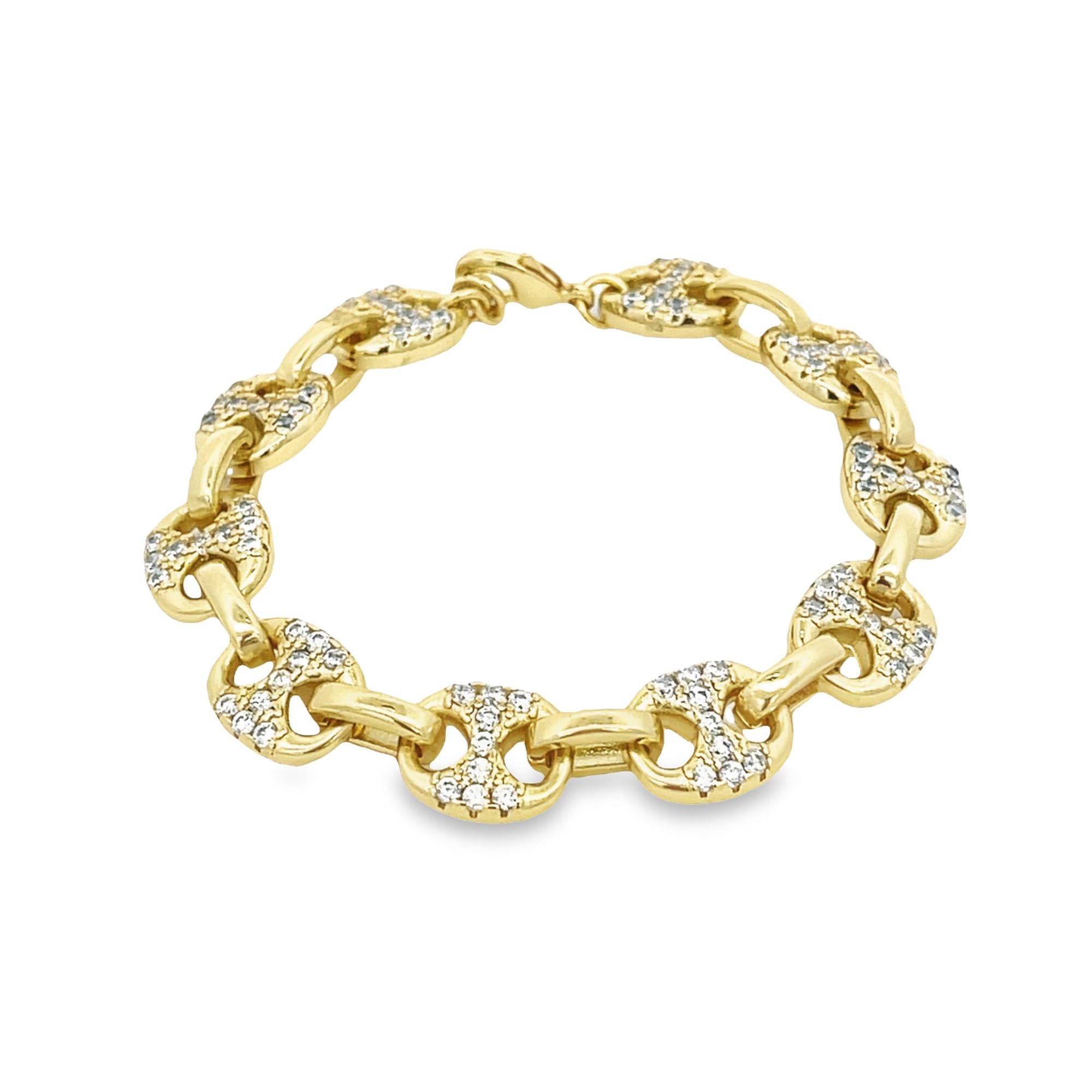 10mm Thick Mariner Link Chain CZ Bracelet (I322)