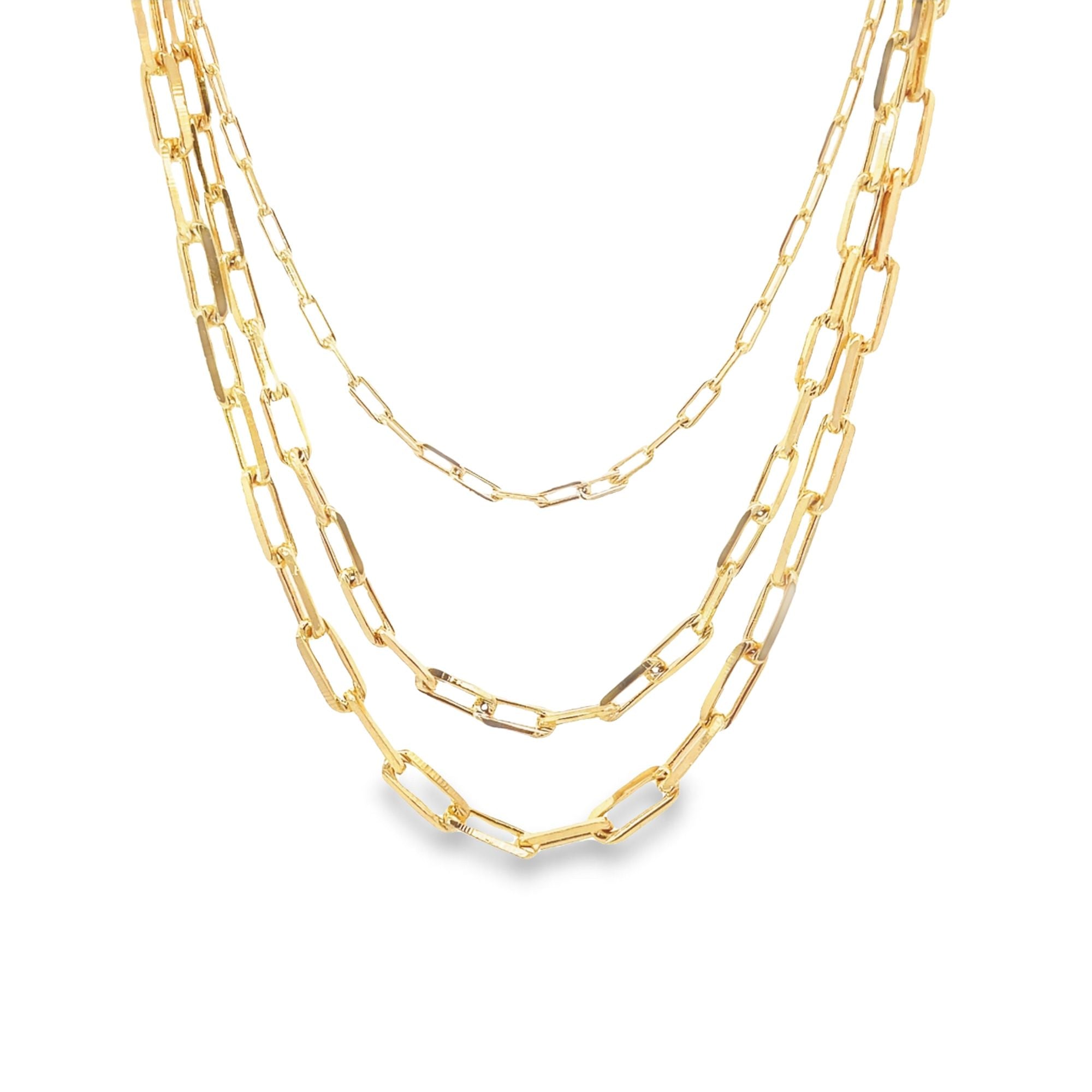 Indulge in elegance with our Triple Paperclip Necklace. Crafted with intricate detail, this necklace features three delicate paper clips intertwined for a refined look. Add a touch of sophistication to any outfit with this premium accessory.