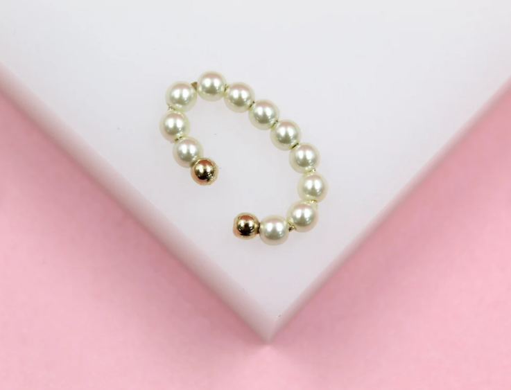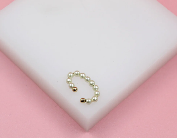 Gold Filled Oval Shaped Pearl Beaded Cuff Earrings (L166)