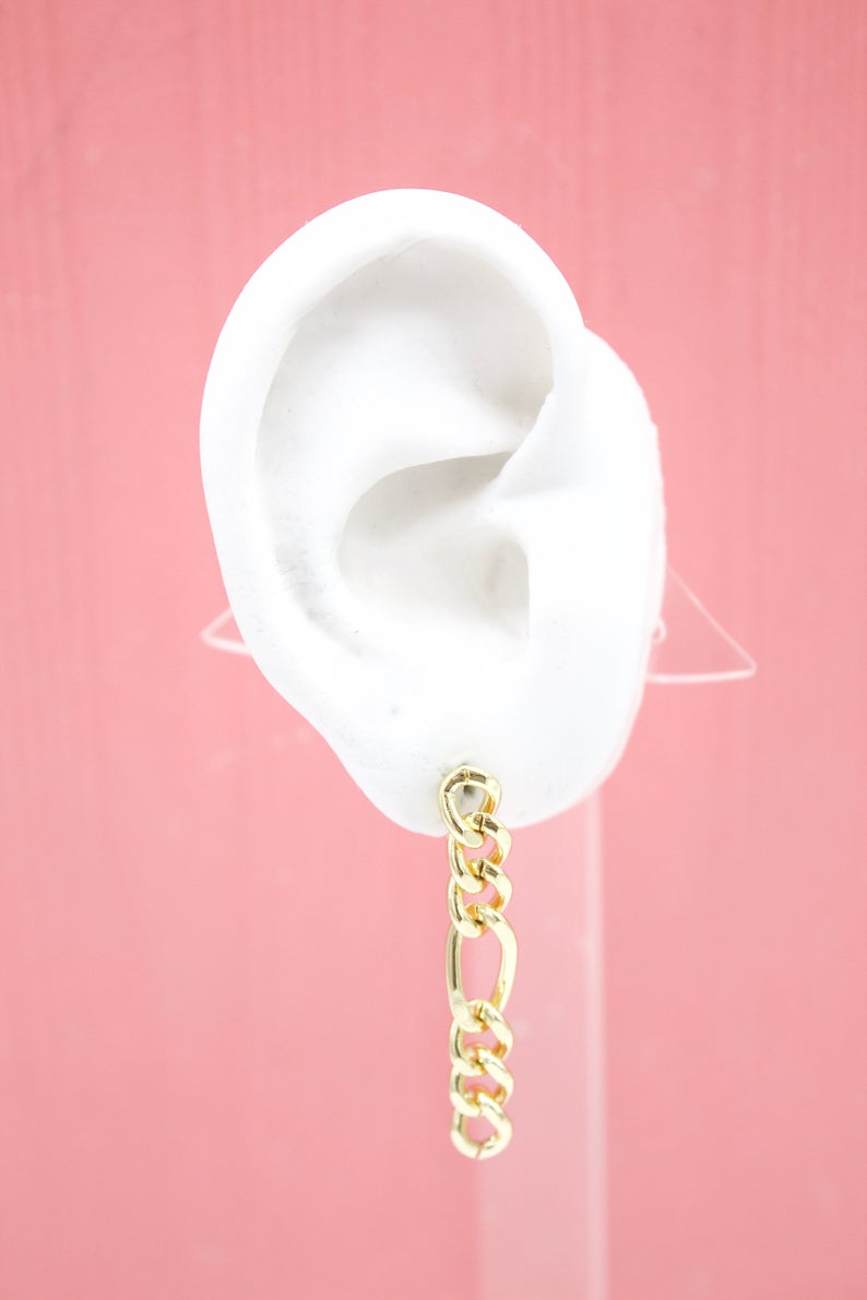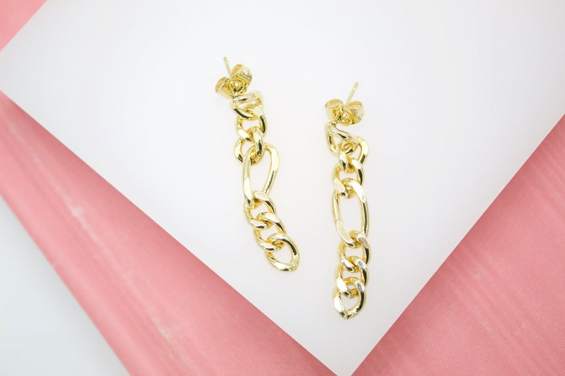 18K Gold Filled Figaro Chain Dangle Drop Long Earrings