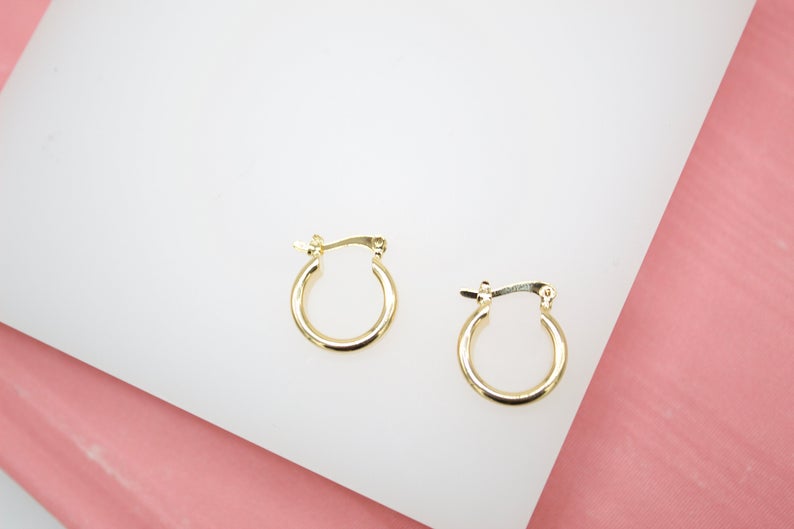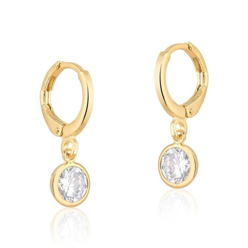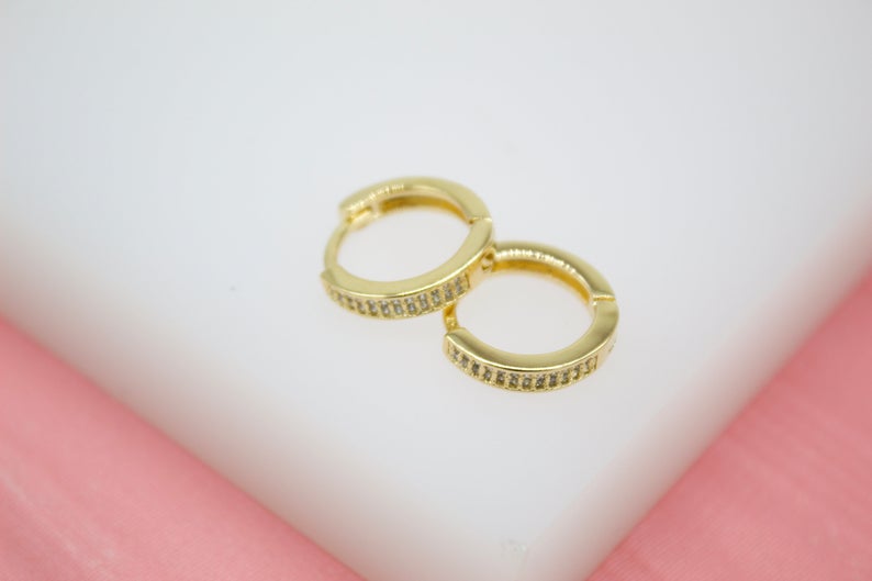 18K Gold Filled Hoops Huggies Earrings With CZ Cubic Zirconia Stone