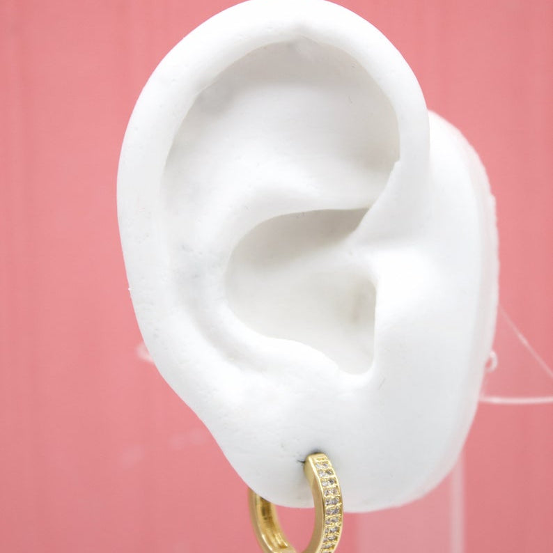 18K Gold Filled Huggies Earrings With CZ Cubic Zirconia Stones