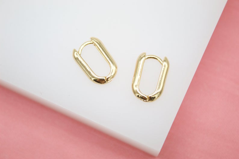 18K Gold Filled Double Long Drop Oval U Hoops Hoops Link Earrings (K123A)