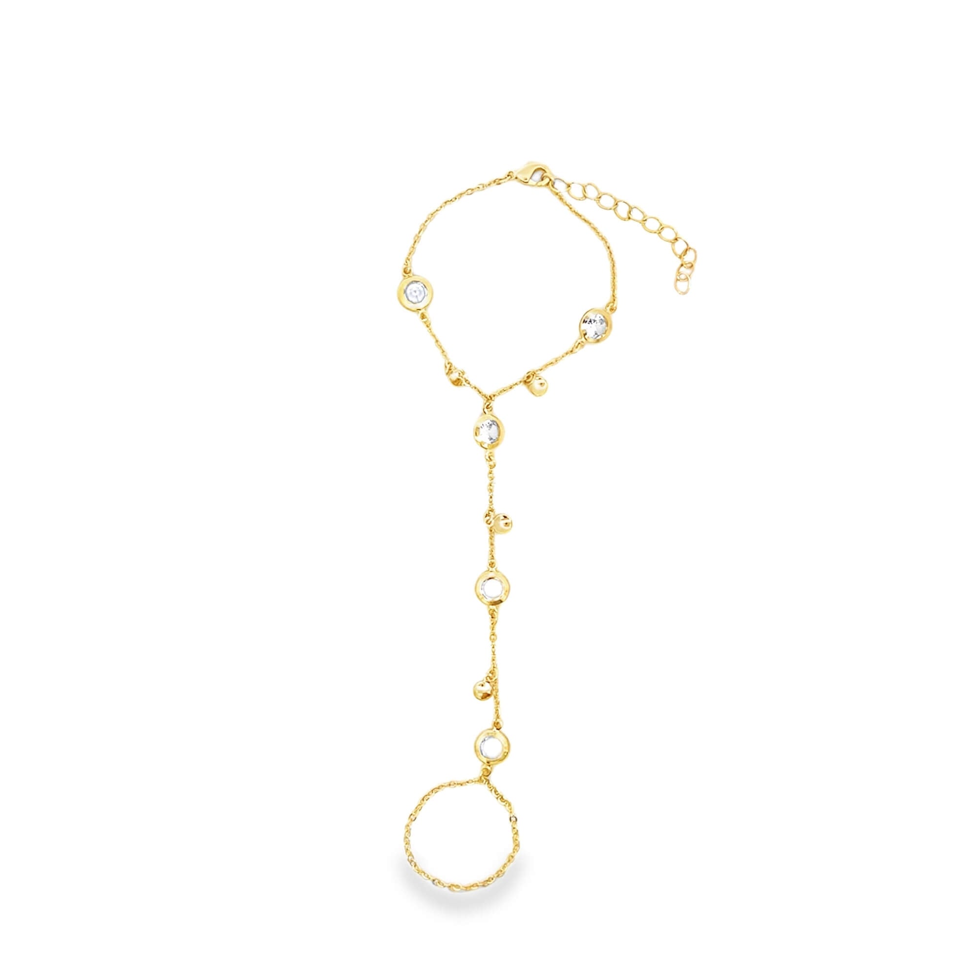 Bezel Cubic Zirconia Station Rolo Hand Chain Bracelet (I444)