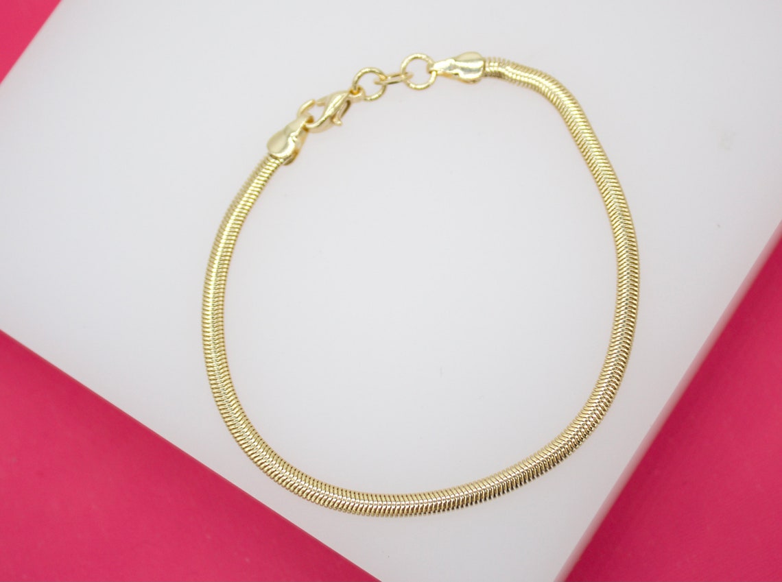 18K Gold Filled 3mm Slinky Snake Chain Bracelet (I9)