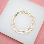 18K Gold Filled 3mm Triple Twisted Herringbone Snake Chain Bracelet (I14)